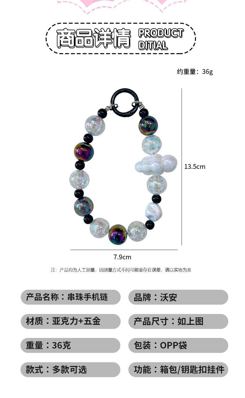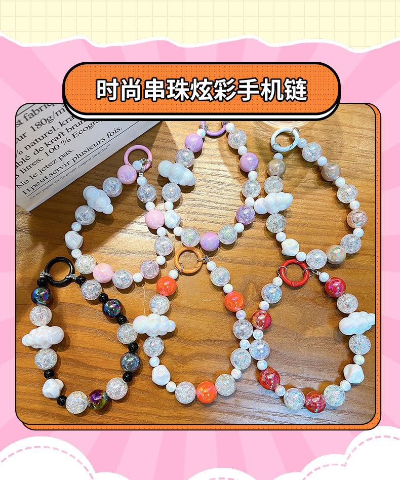 Cadena para teléfono móvil con cuentas de nube de dibujos animados, llavero, funda para teléfono móvil, colgante, joyería para niña, cordón de muñeca con forma de corazón, regalo al por mayor