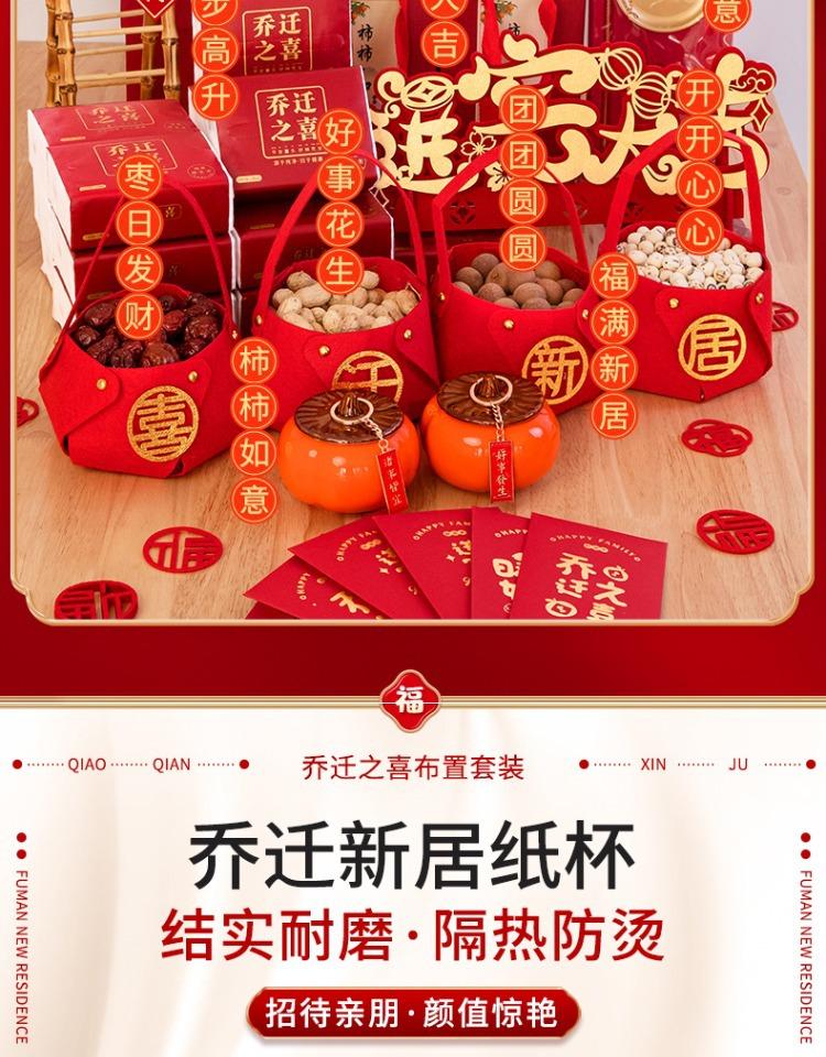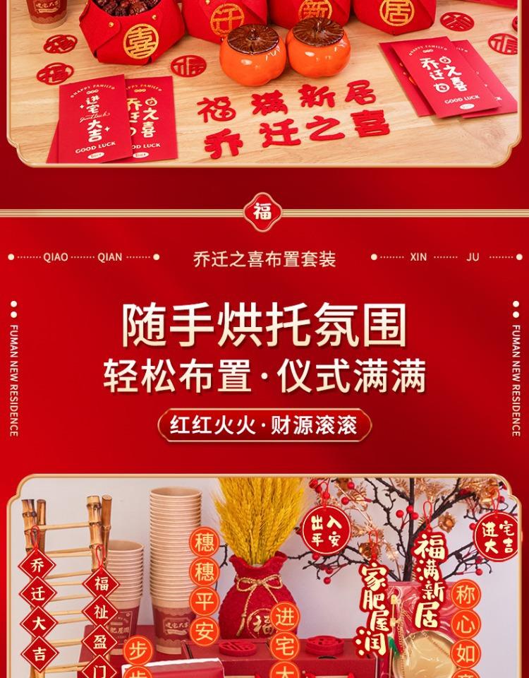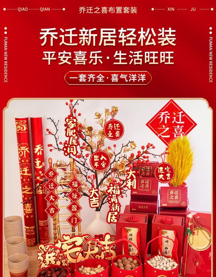 Decoración Qiaozhixi suministros para decoración de nuevo hogar regalo de mudanza traje de decoración para ceremonia de entrada a nueva casa colección completa