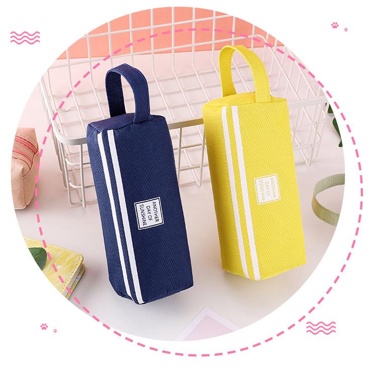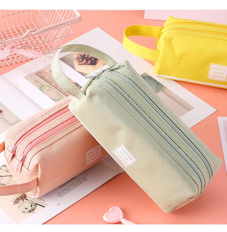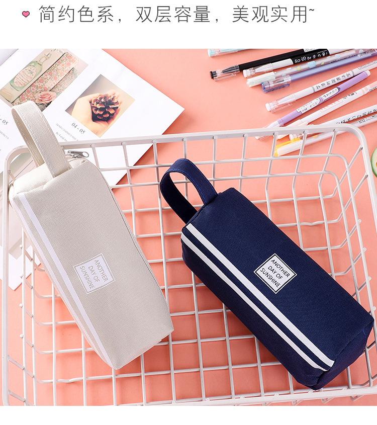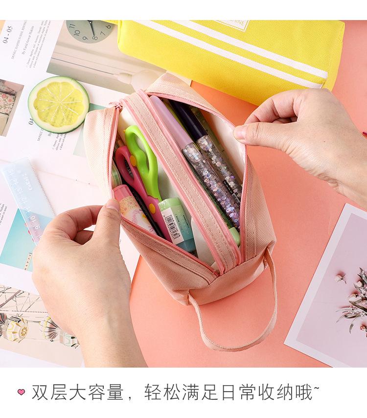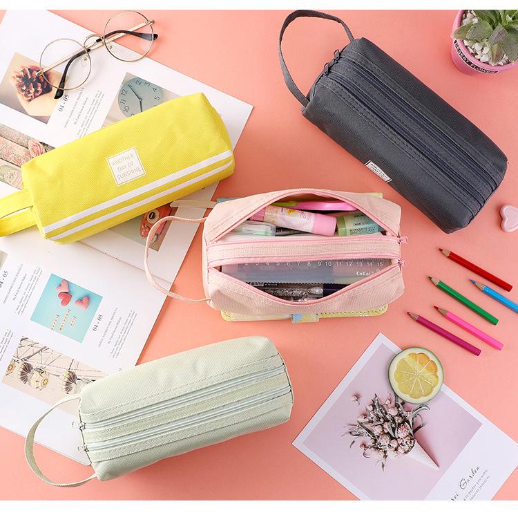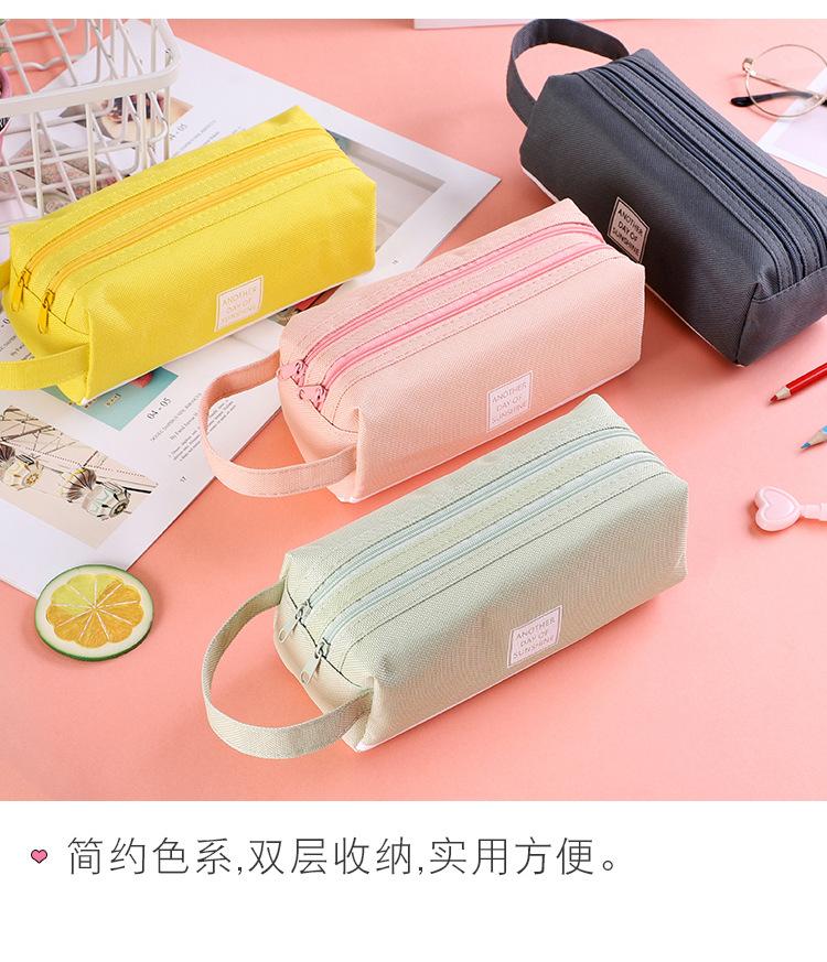 Estuche multifuncional de doble capa para lápices, estuche de lona de gran capacidad, creativo y sencillo para niños, estuche de papelería para escuela primaria.