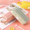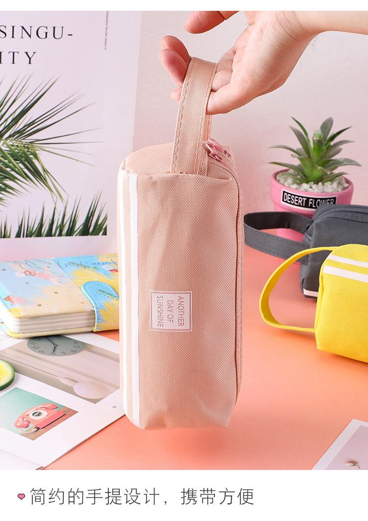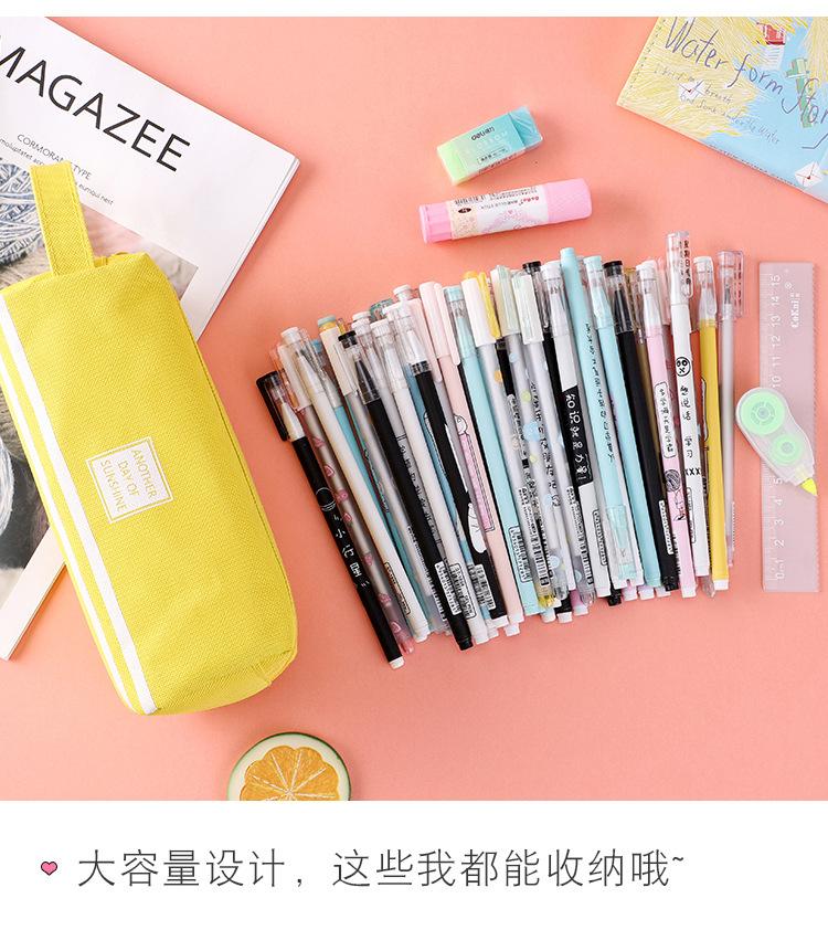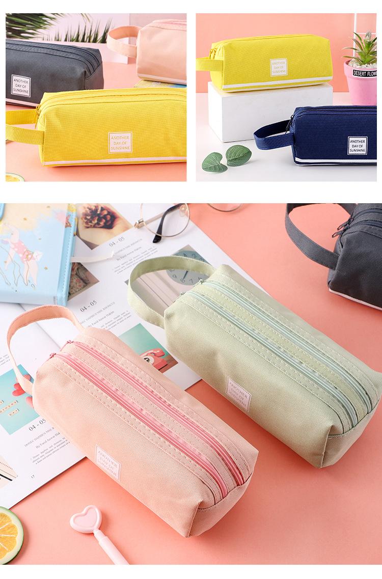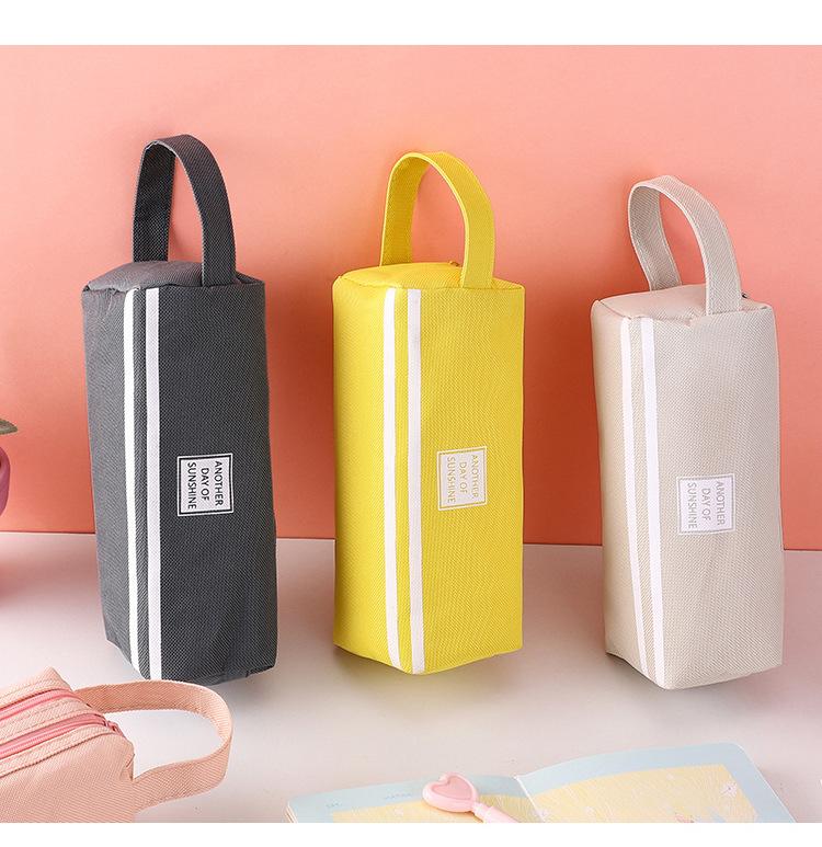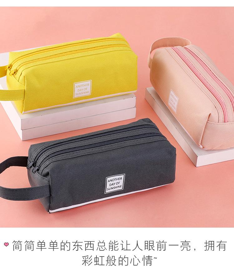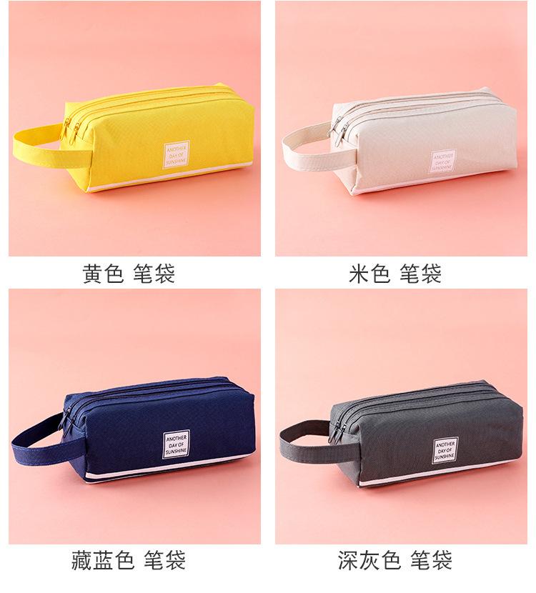 Estuche multifuncional de doble capa para lápices, estuche de lona de gran capacidad, creativo y sencillo para niños, estuche de papelería para escuela primaria.