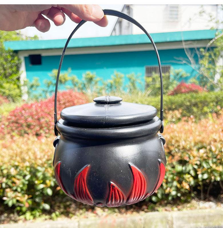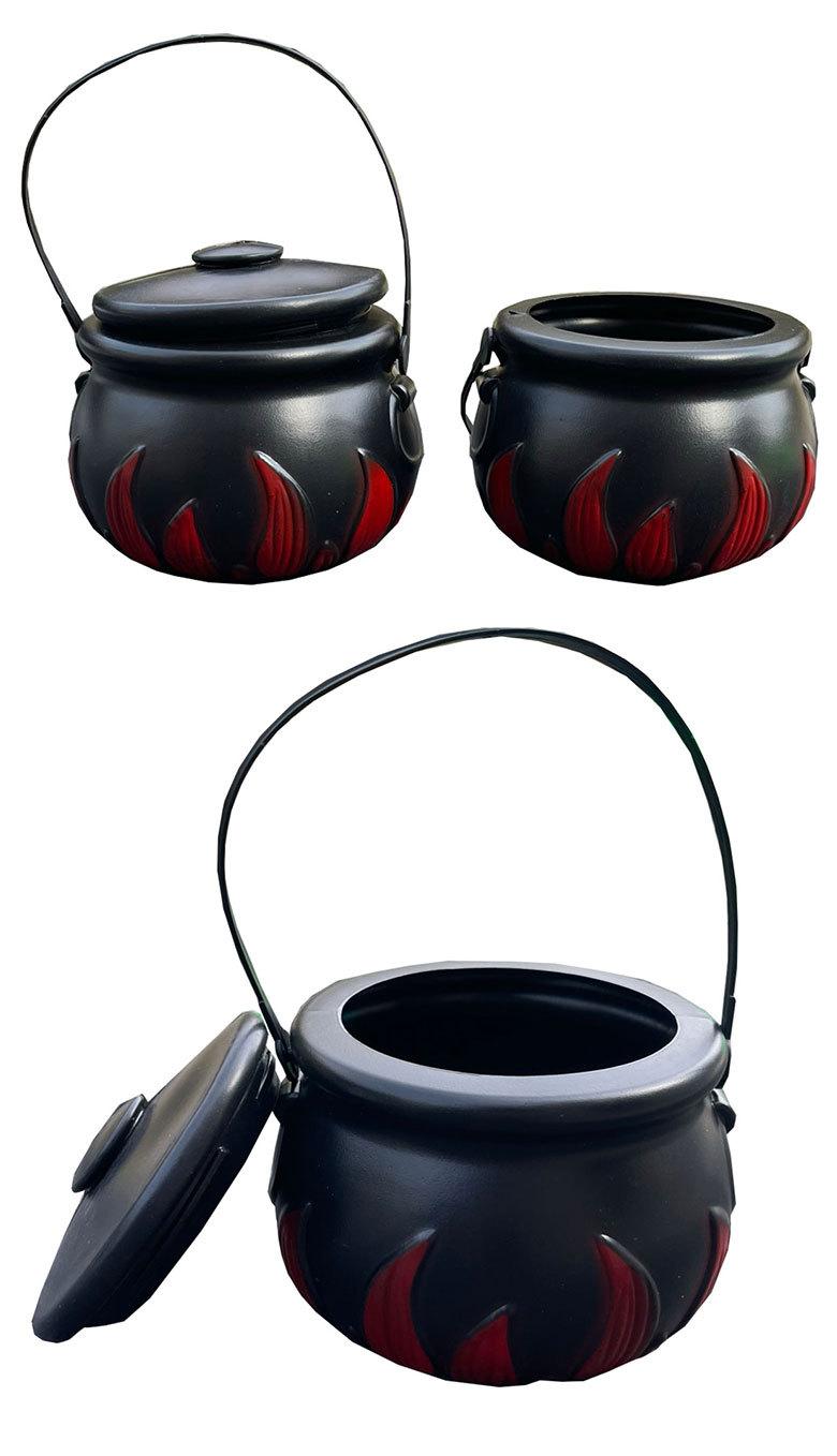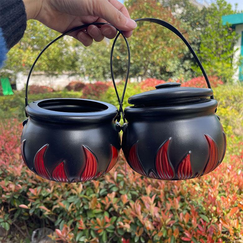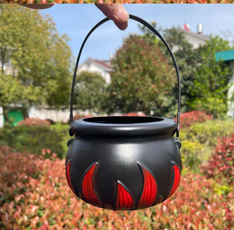 Cubo de bruja de Halloween con llamas, cubo de llamas, tarro de llamas, tarro de dulces, cubo de dulces de Halloween, artículos de decoración de Halloween