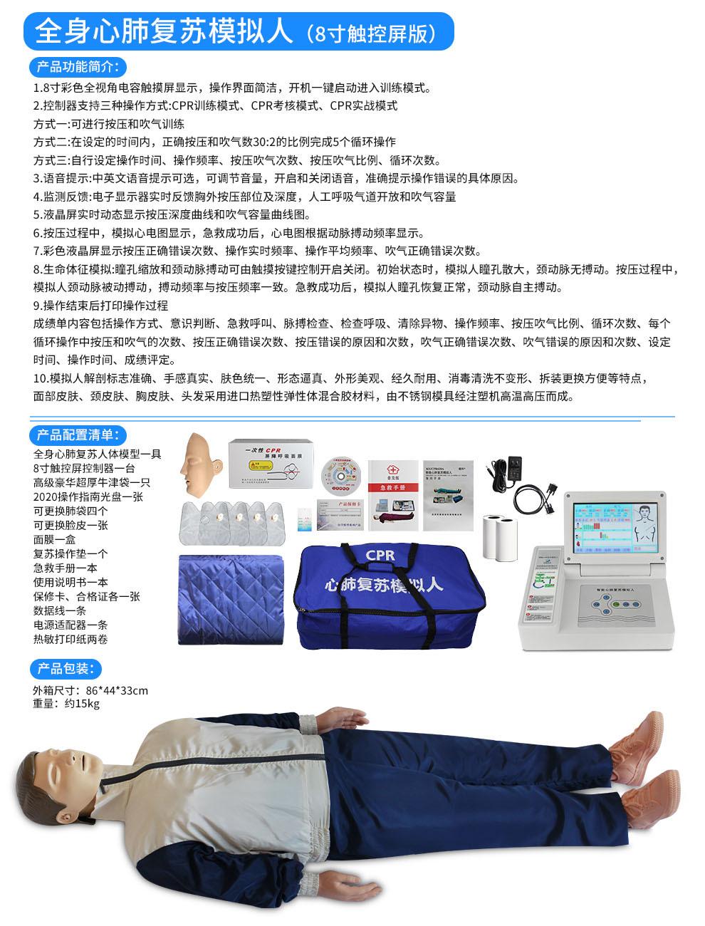 Simulador de reanimación cardiopulmonar con pantalla de 8 pulgadas, compresiones torácicas, respiración artificial, maniquí de entrenamiento de primeros auxilios