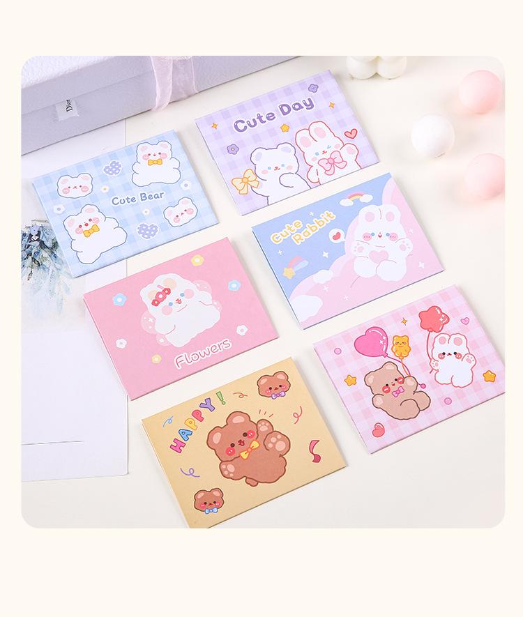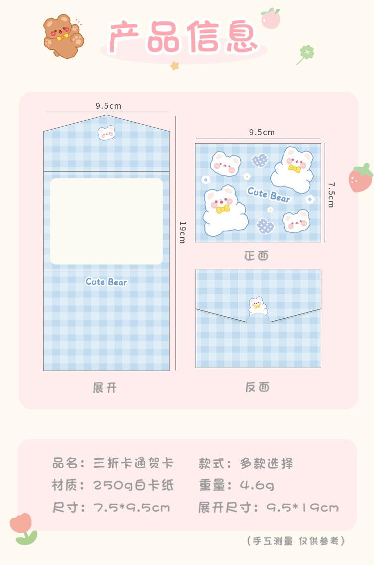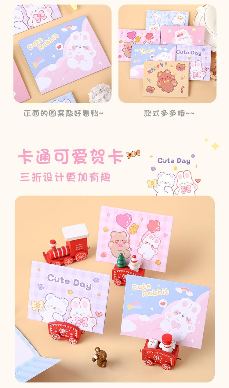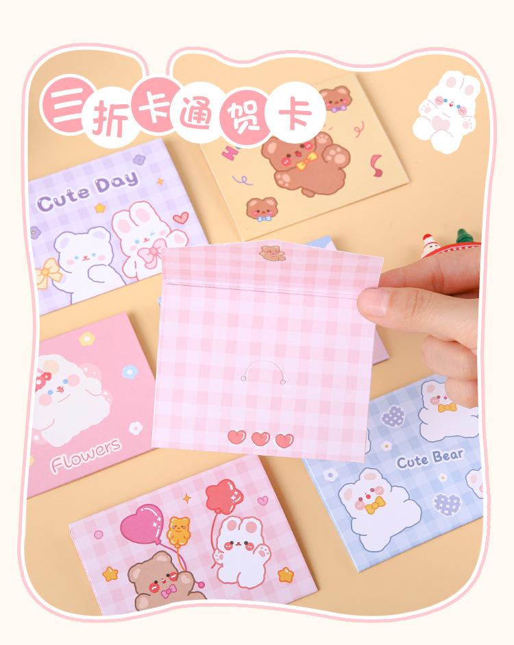 Tarjeta de Felicitación Estilo Ins de Oso y Conejo Tarjeta de Mensaje de Dibujos Animados para Vacaciones Deseos de Cumpleaños Linda Postal Tarjeta DIY para Niños