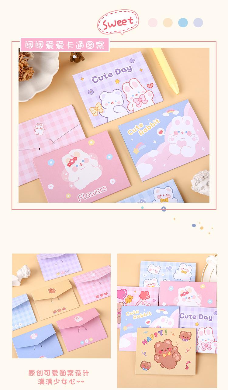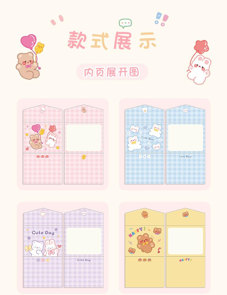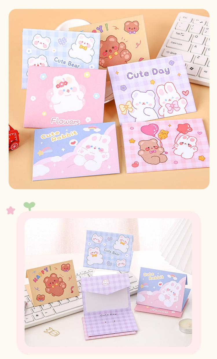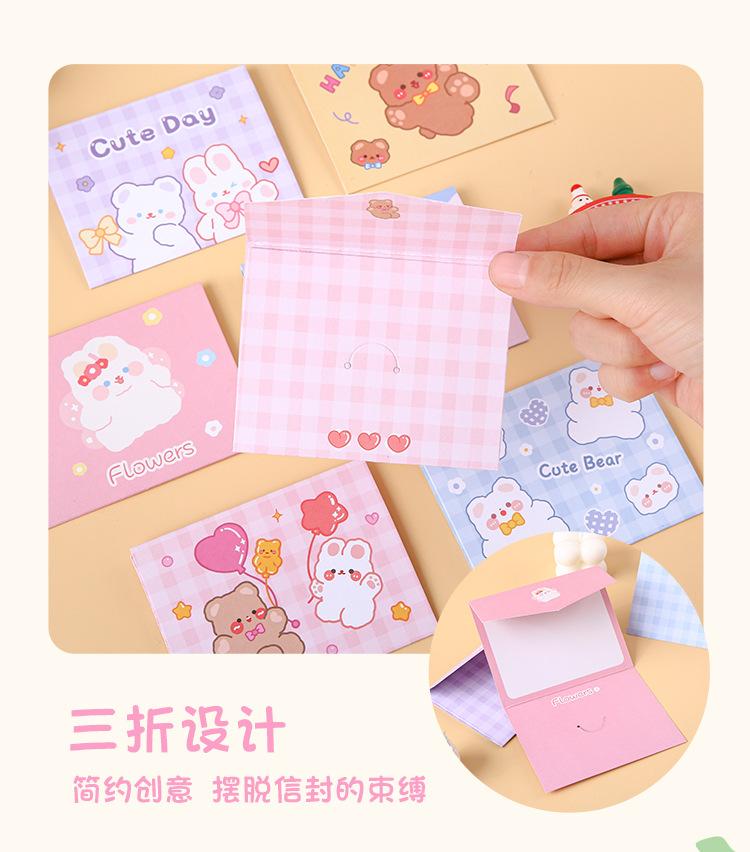 Tarjeta de Felicitación Estilo Ins de Oso y Conejo Tarjeta de Mensaje de Dibujos Animados para Vacaciones Deseos de Cumpleaños Linda Postal Tarjeta DIY para Niños