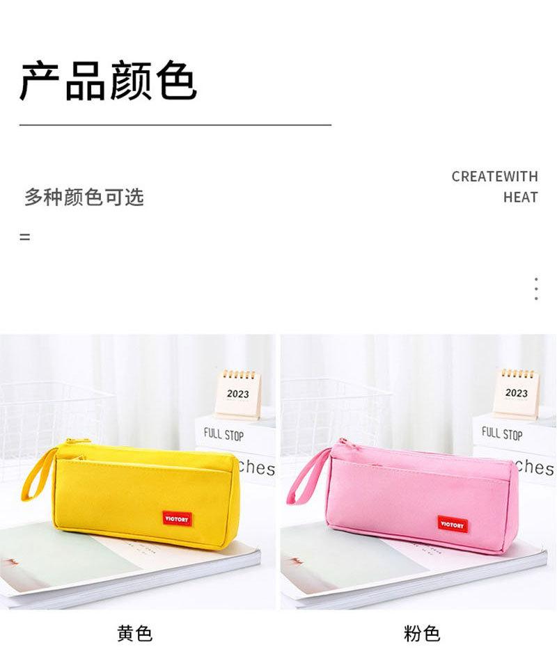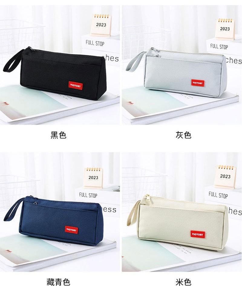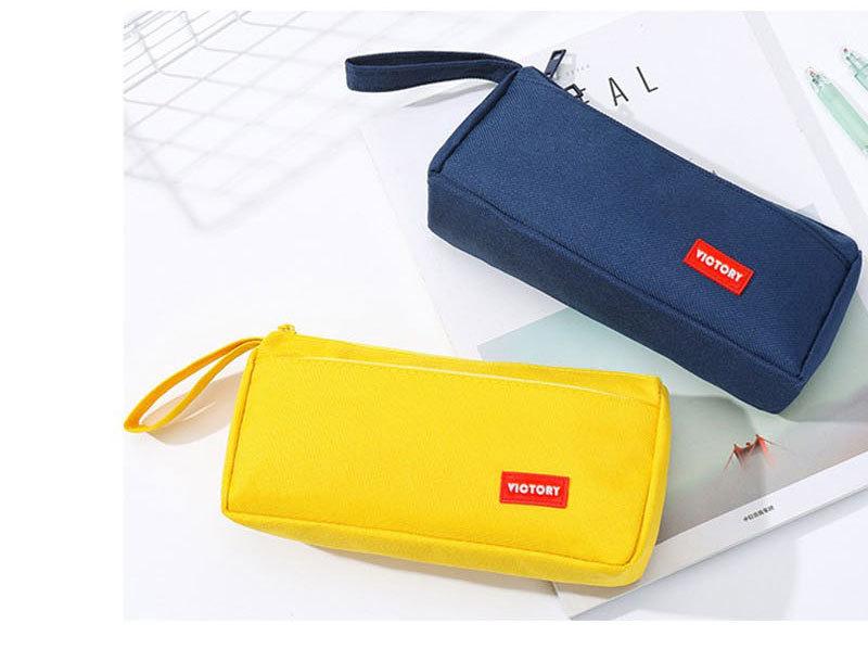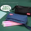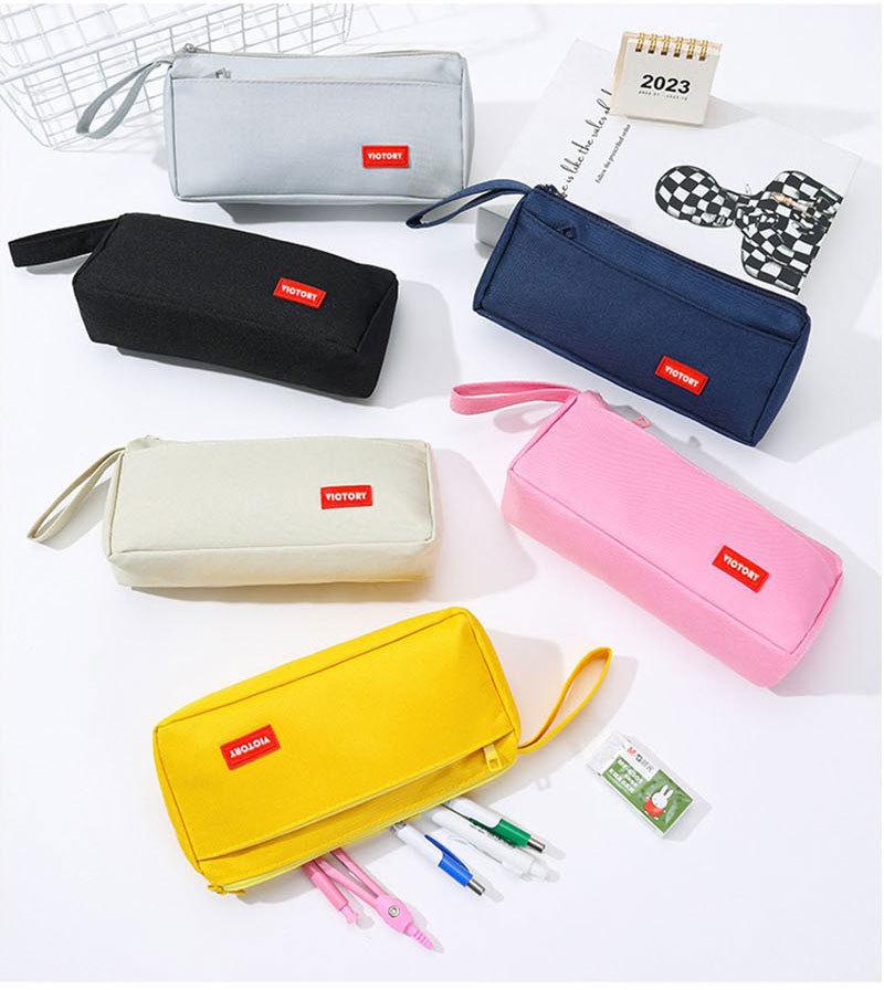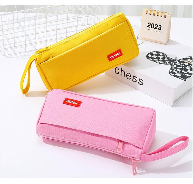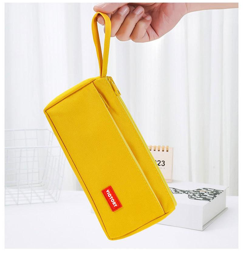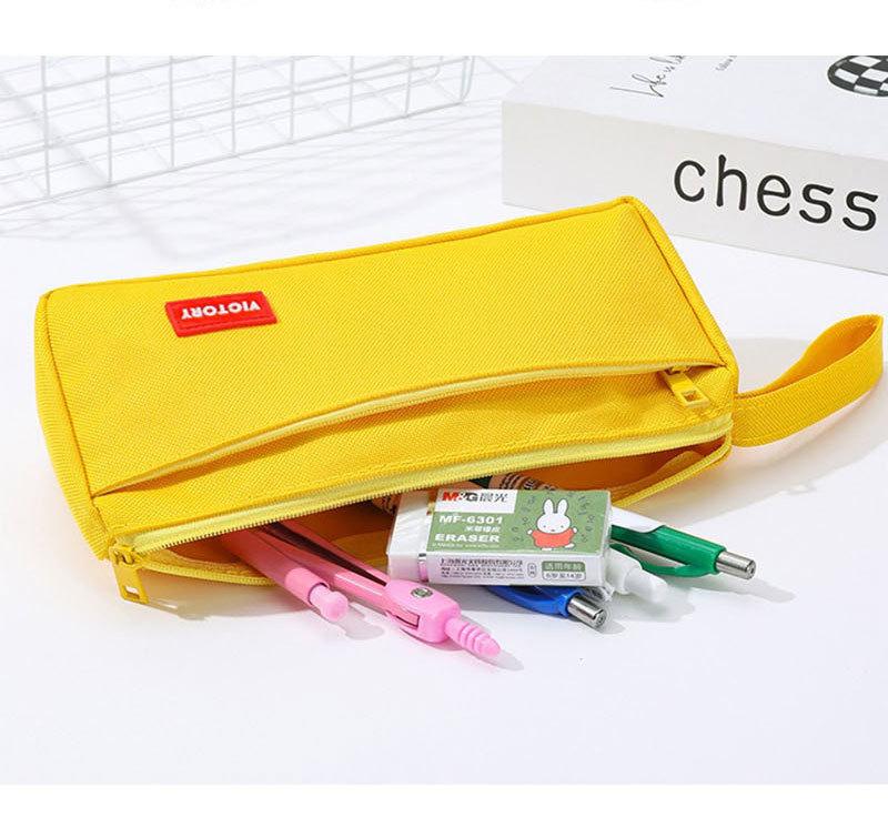 Estuche simple de gran capacidad para lápices, bolsa de lona para estudiantes, estuche para lápices de color sólido, caja de papelería de doble capa, bolsa de almacenamiento de tela Oxford