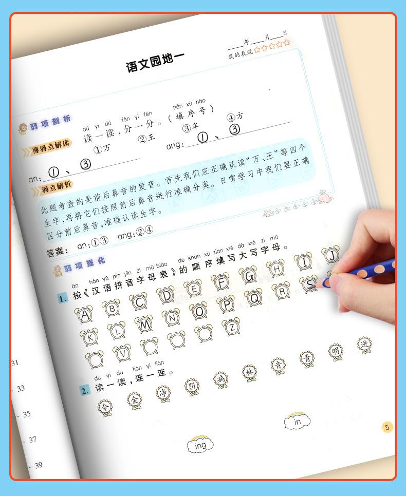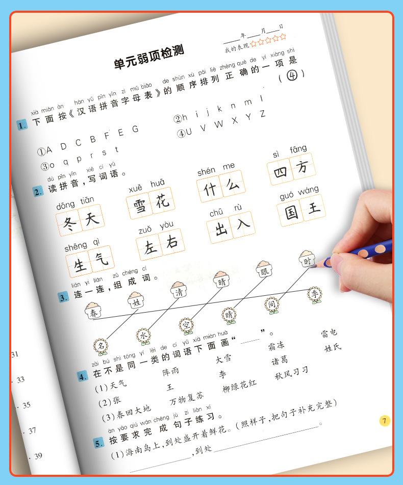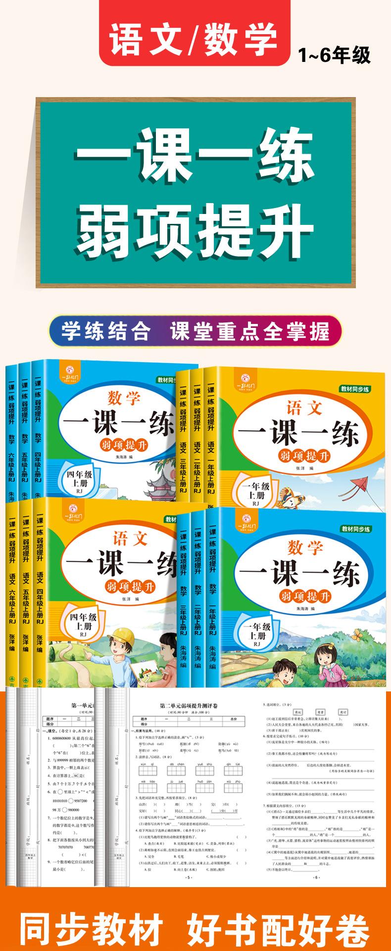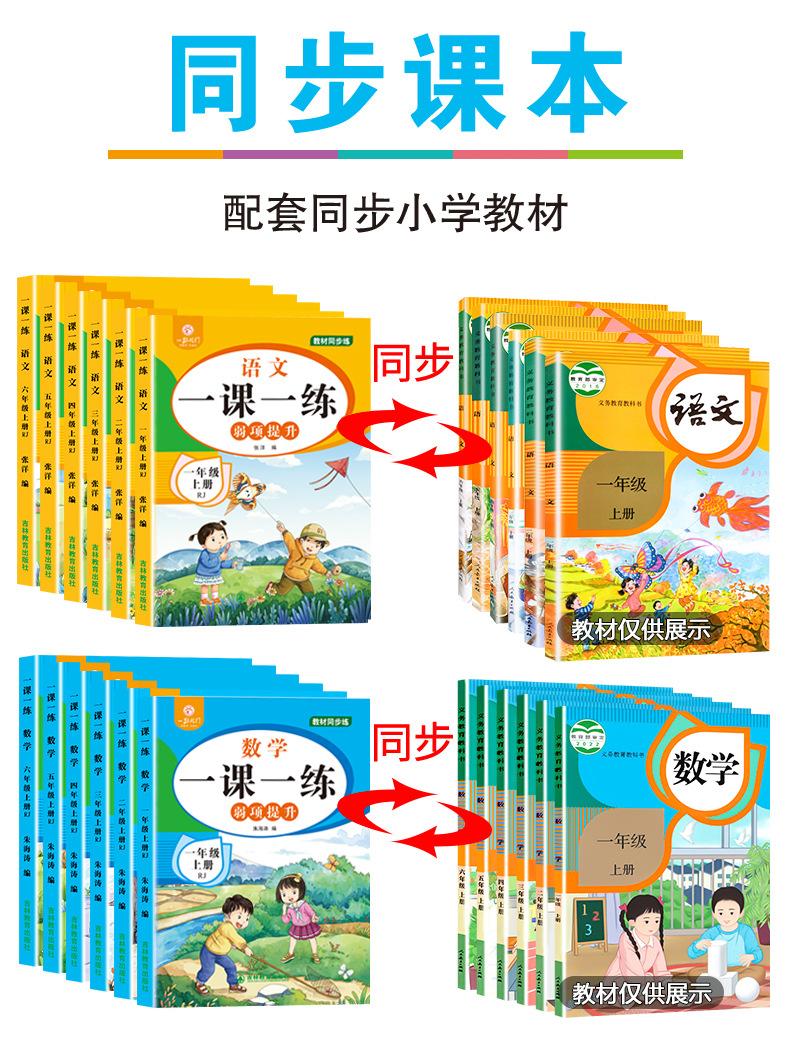 Primer volumen de los grados 1, 2, 3, 4, 5 y 6, entrenamiento sincrónico de chino y matemáticas, lección 1, práctica, conjunto completo de libros de texto de escuela primaria