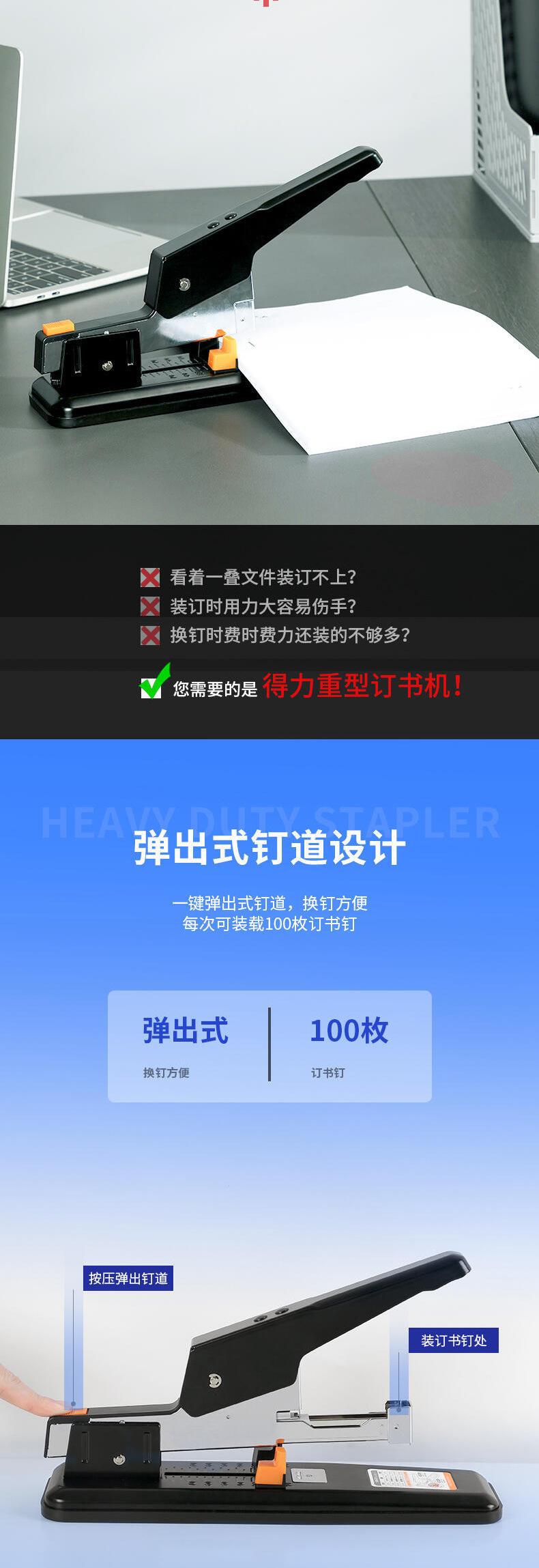 Grapadora Deli grande grande engrosada grapadora de 100 páginas estudiante libro grueso suministros máquina encuadernadora de oficina pedido