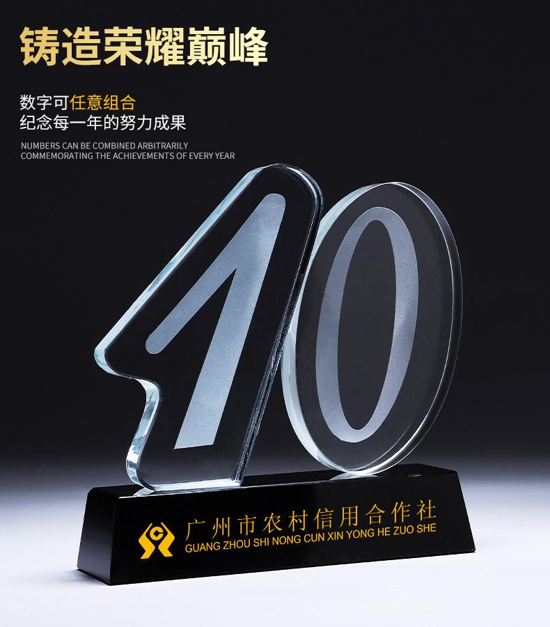 Celebración del aniversario de la empresa Crystal Trophy Digital 123510 Diez premios de la reunión anual del personal destacado Regalos conmemorativos