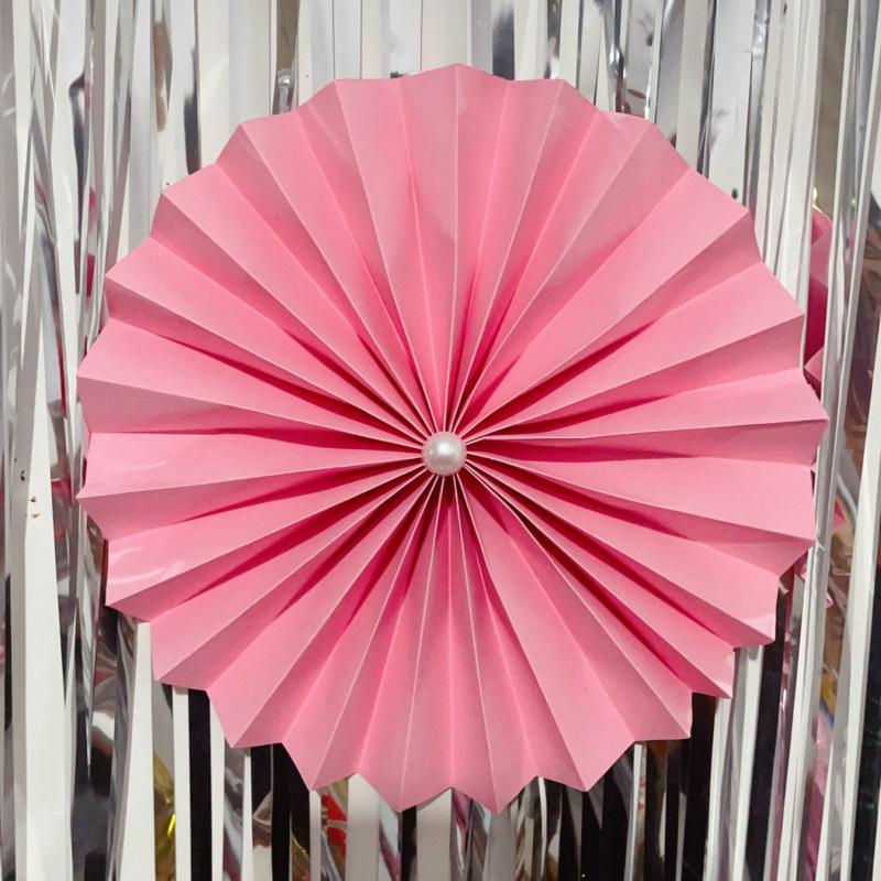 Flor de abanico de papel perlado suministros para boda diseño de pared de fondo para sala de bodas traje abanico plegable para boda abanico rojo rosa al por mayor