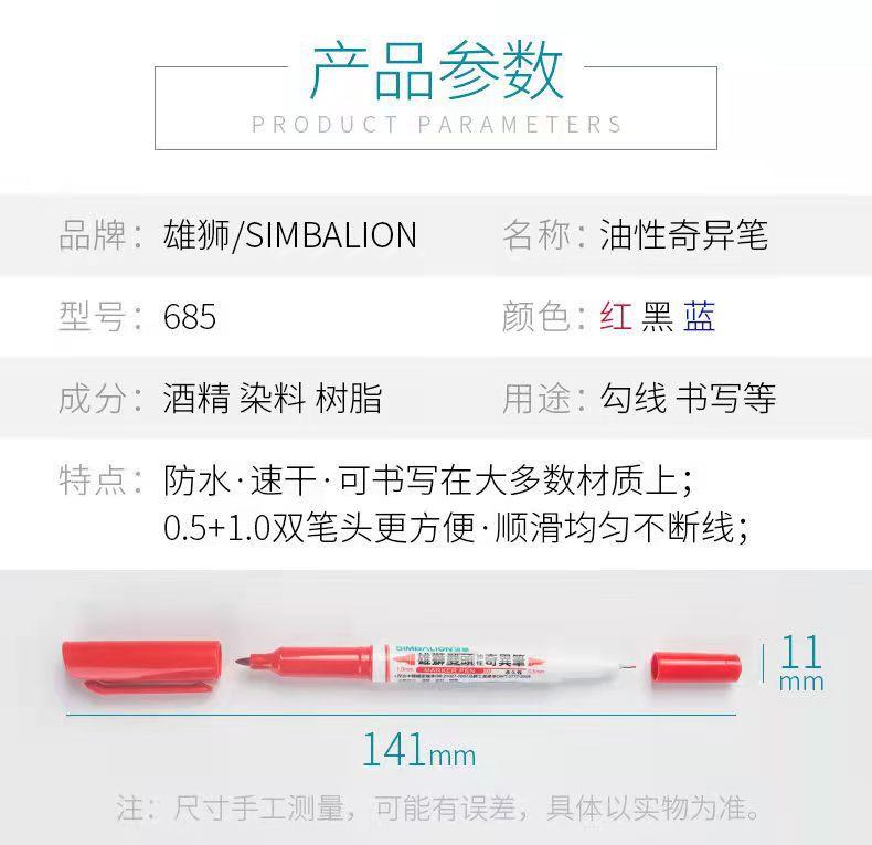 Pluma de gancho Lion 685 Pequeña de doble punta aceitosa Pluma extraña Pintura para niños Marcador negro pintado a mano Pluma fina Impermeable