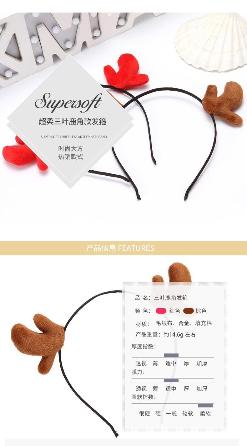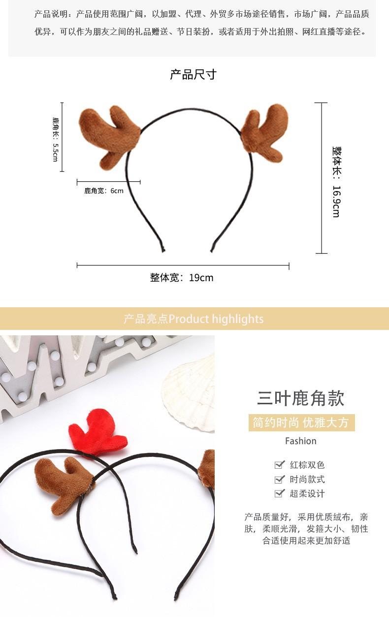 Diadema navideña de tres hojas con astas de reno de venta caliente transfronteriza, lindos accesorios para el cabello navideños para disfrazarse, venta de lindo tocado de astas, horquilla