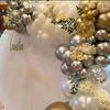 Conjunto de arco de cadena de globos de metal dorado y plateado para fiestas de cumpleaños y eventos.