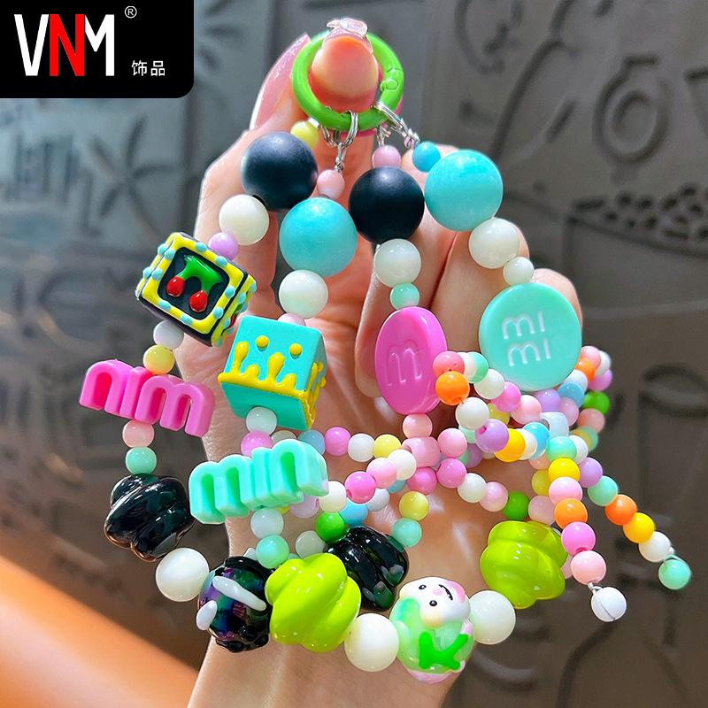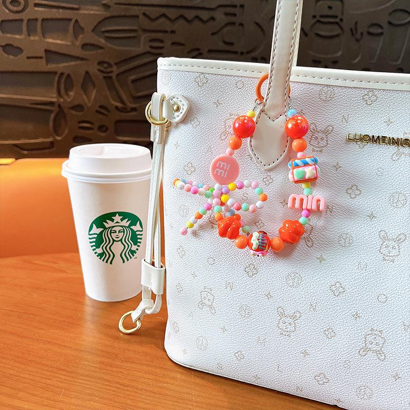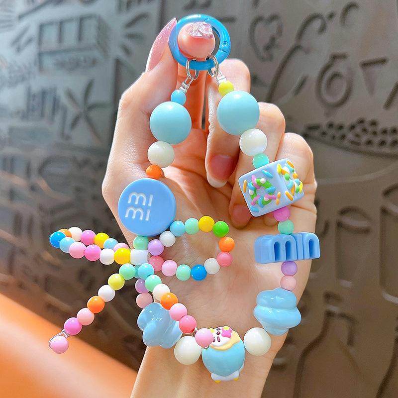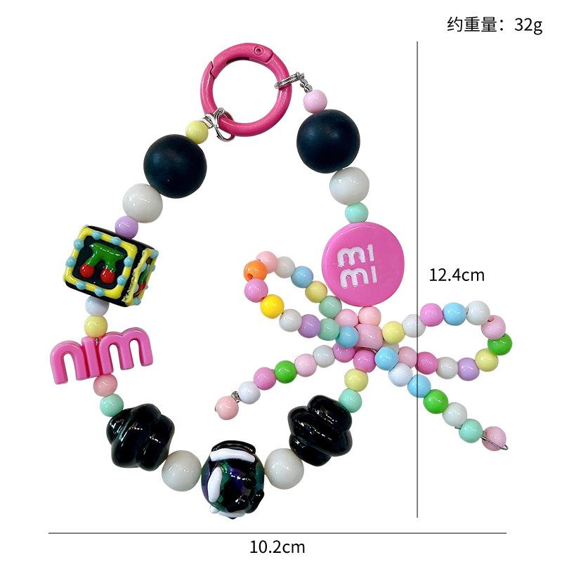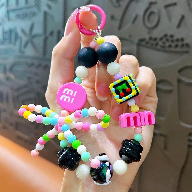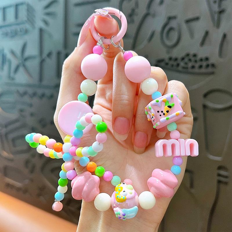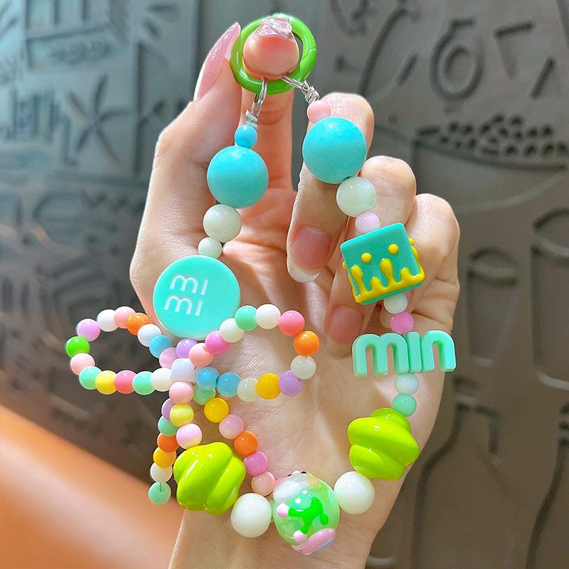 Llavero creativo con cuentas de color dopamina para teléfono móvil, cadena para teléfono móvil con cuentas pintadas a mano, colgante para bolso, llavero pequeño