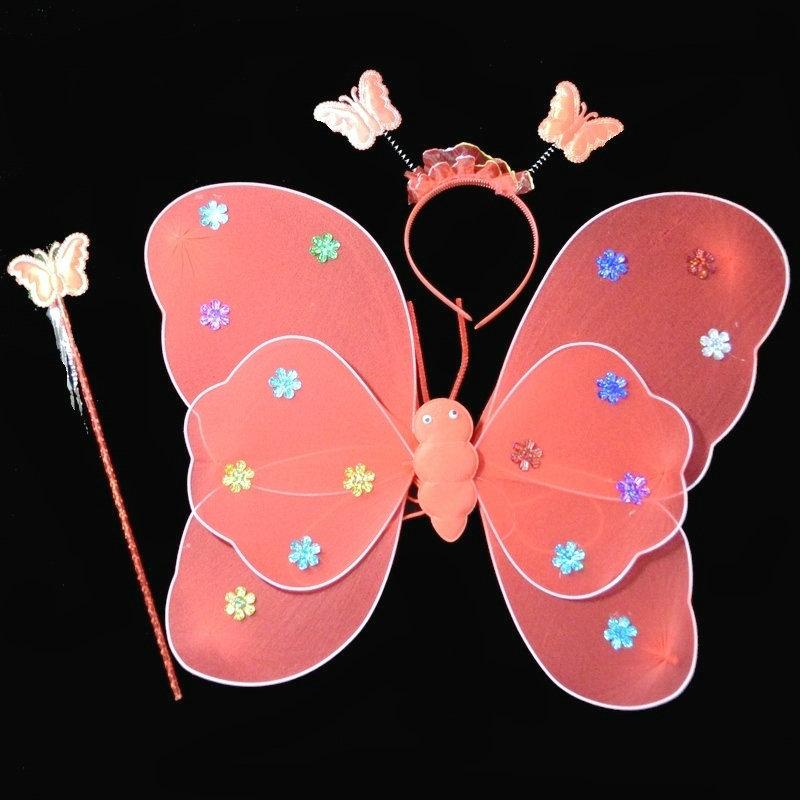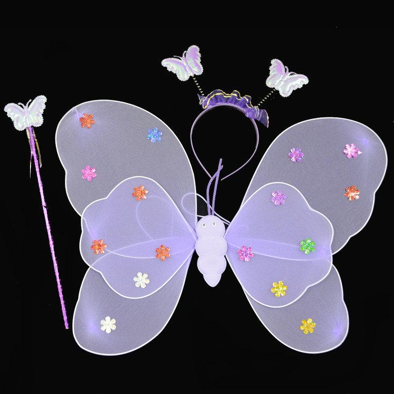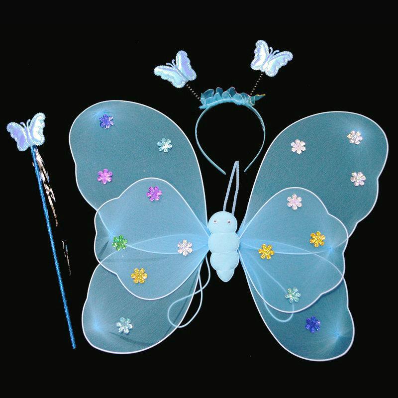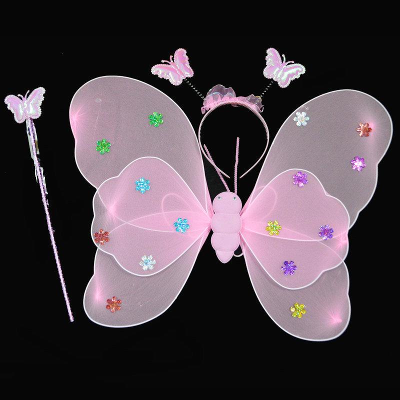 [Nombre]: Set de tres piezas de alas de doble capa con lentejuelas: alas + varita de hada + tocado