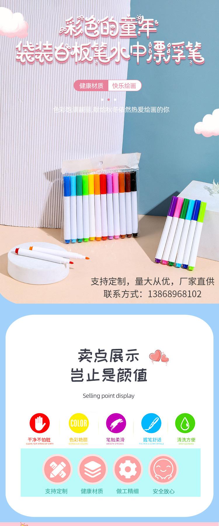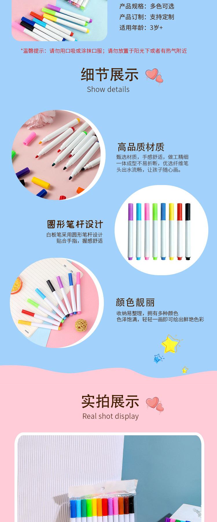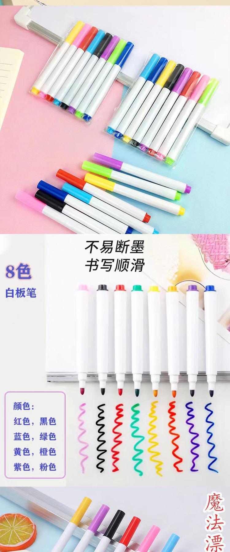 Plumón de pizarra blanca de color borrable pincel aceitoso bebé grafiti tablero de dibujo pluma 8 colores bolsa OPP pluma flotante en agua-1