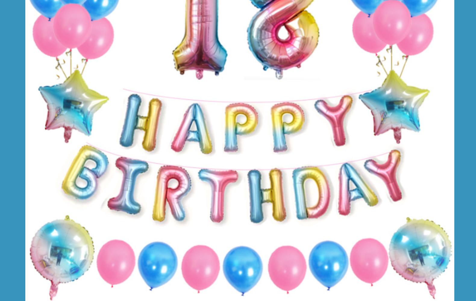 Globo degradado de arcoíris, versión estadounidense, paquete digital de cumpleaños, decoración de fiesta con lentejuelas y estrella de cinco puntas