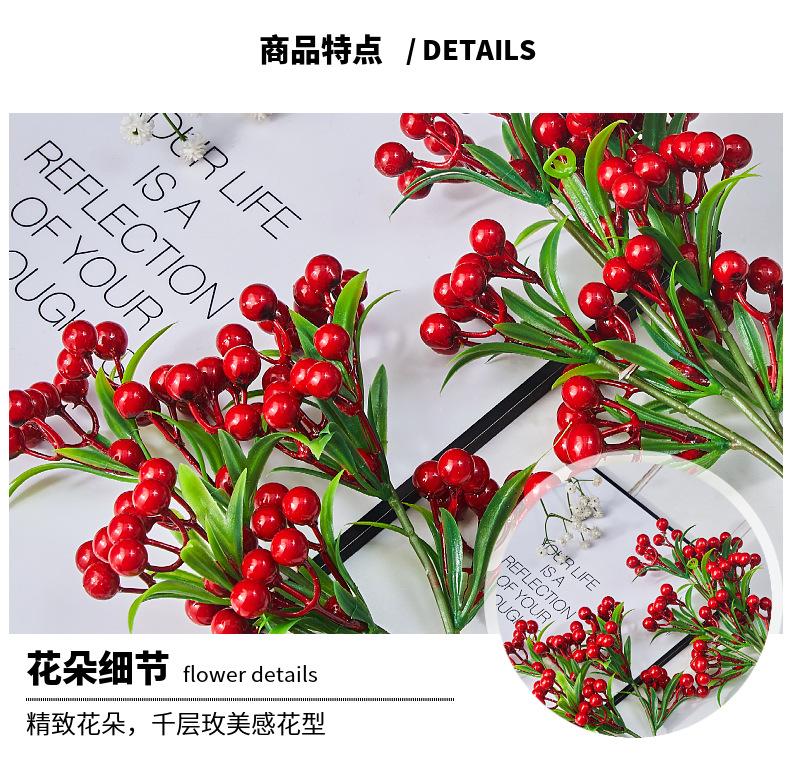 Fruta de la fortuna de simulación, espuma de arándano, fruta falsa, flor de la fortuna, fruta de acebo suave para el hogar, venta al por mayor y al por menor