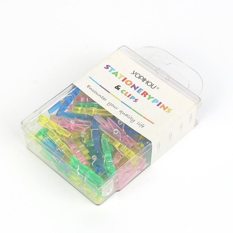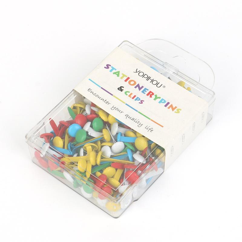 Chincheta de metal color cielo azul Wuyi recubierta de plástico, caja de plástico PS, papelería, clip para papel, chincheta creativa, suministros de oficina, encuadernación