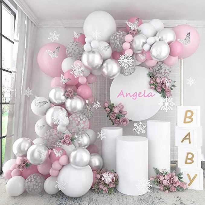 Nuevo traje de globo metálico plateado fiesta de cumpleaños diseño de habitación de boda globo de lentejuelas de mariposa rosa al por mayor