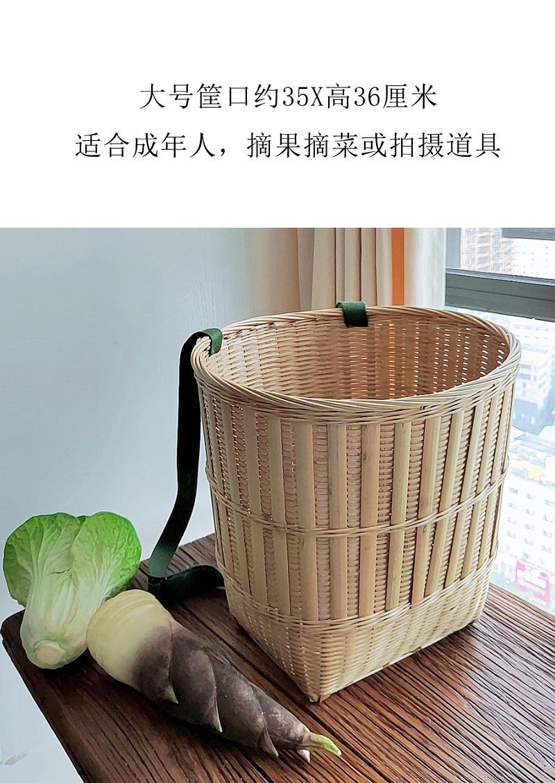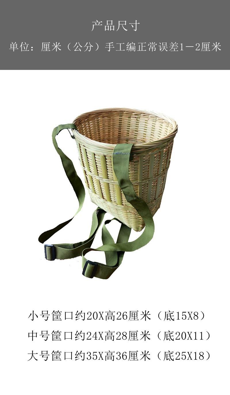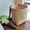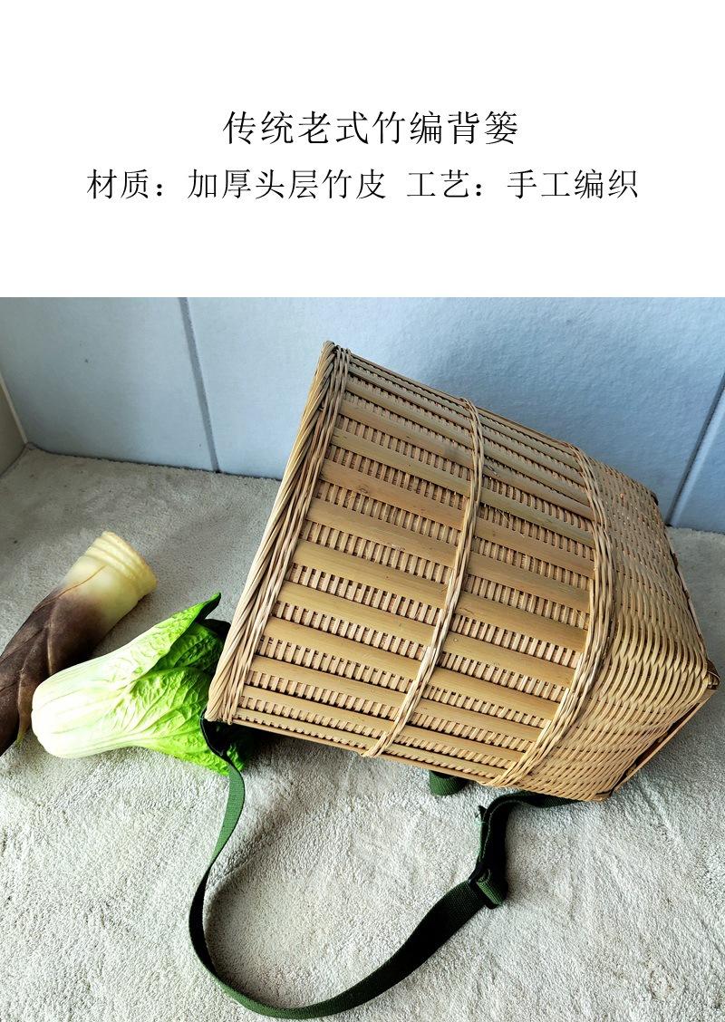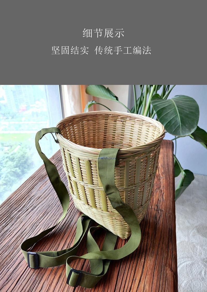 Cesta tejida de bambú tradicional engrosada reforzada primera capa cuero de bambú cesta de bambú Oval correa de bambú ajustable cesta tejida a mano