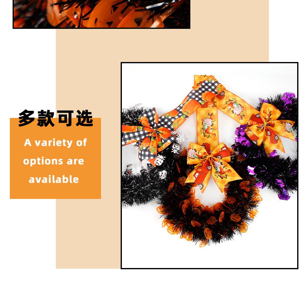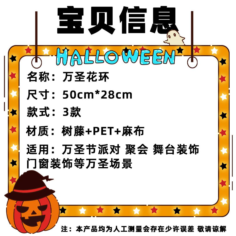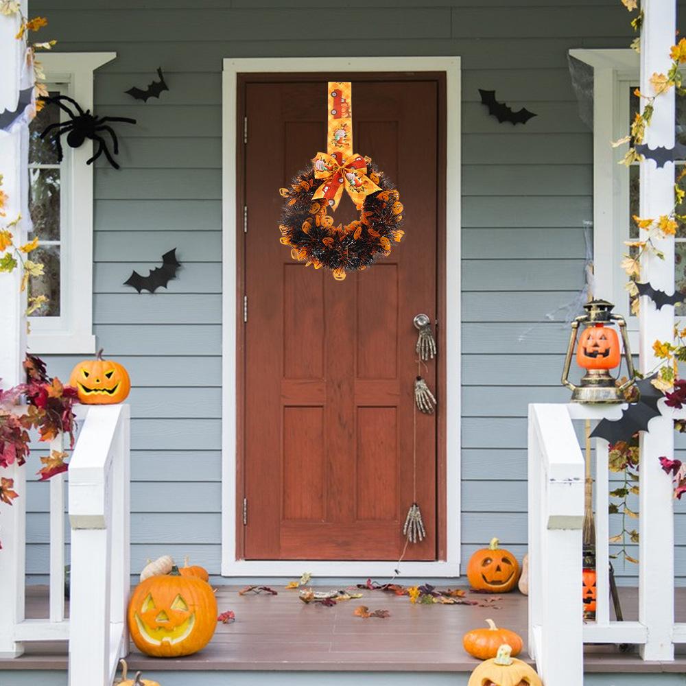 Guirnalda Colgante de Halloween Decoración Navideña para el Hogar Lazo Círculo de Ratán Festival de Fantasmas Calabaza Calavera Tira Colorida Anillo de Ratán para Puerta