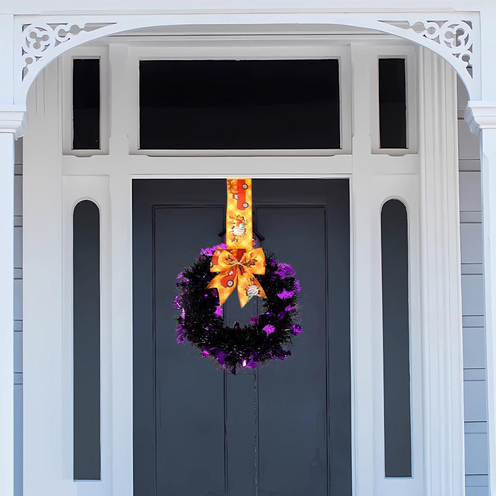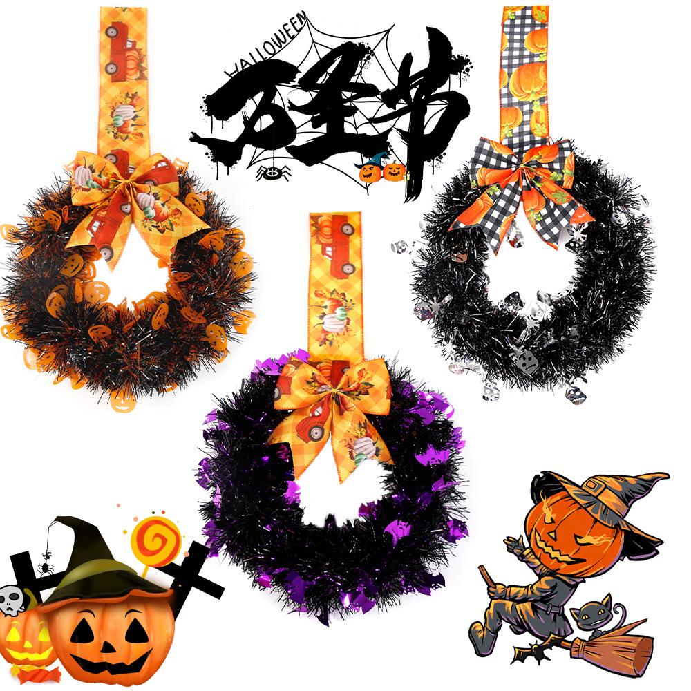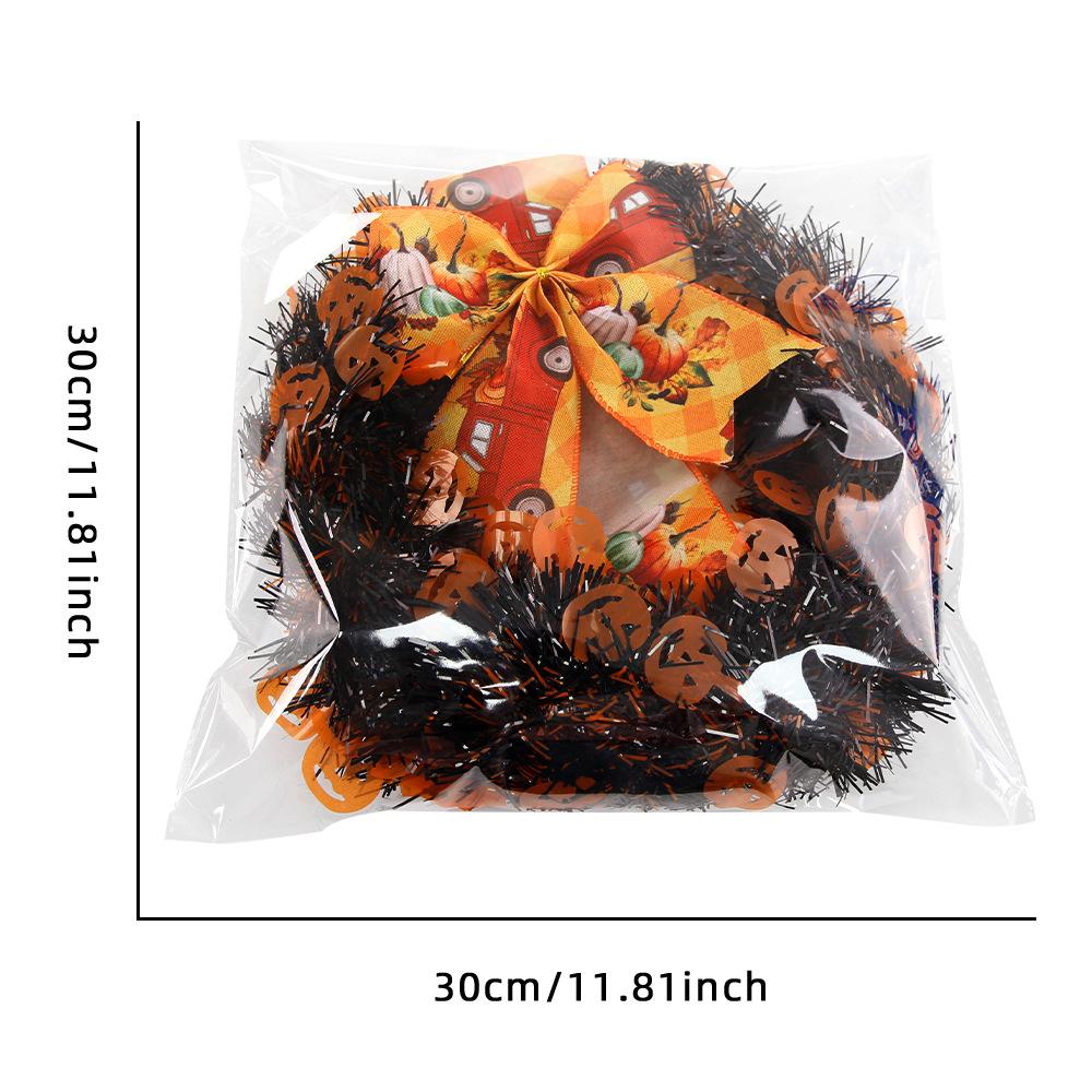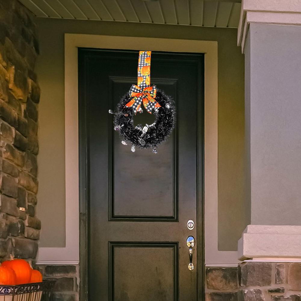 Guirnalda Colgante de Halloween Decoración Navideña para el Hogar Lazo Círculo de Ratán Festival de Fantasmas Calabaza Calavera Tira Colorida Anillo de Ratán para Puerta