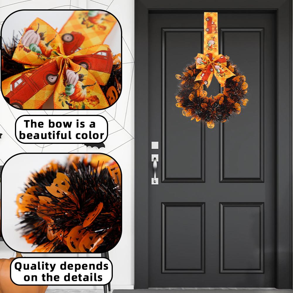 Bat Wool Garland, Pumpkin Wreath, Skull Wreath