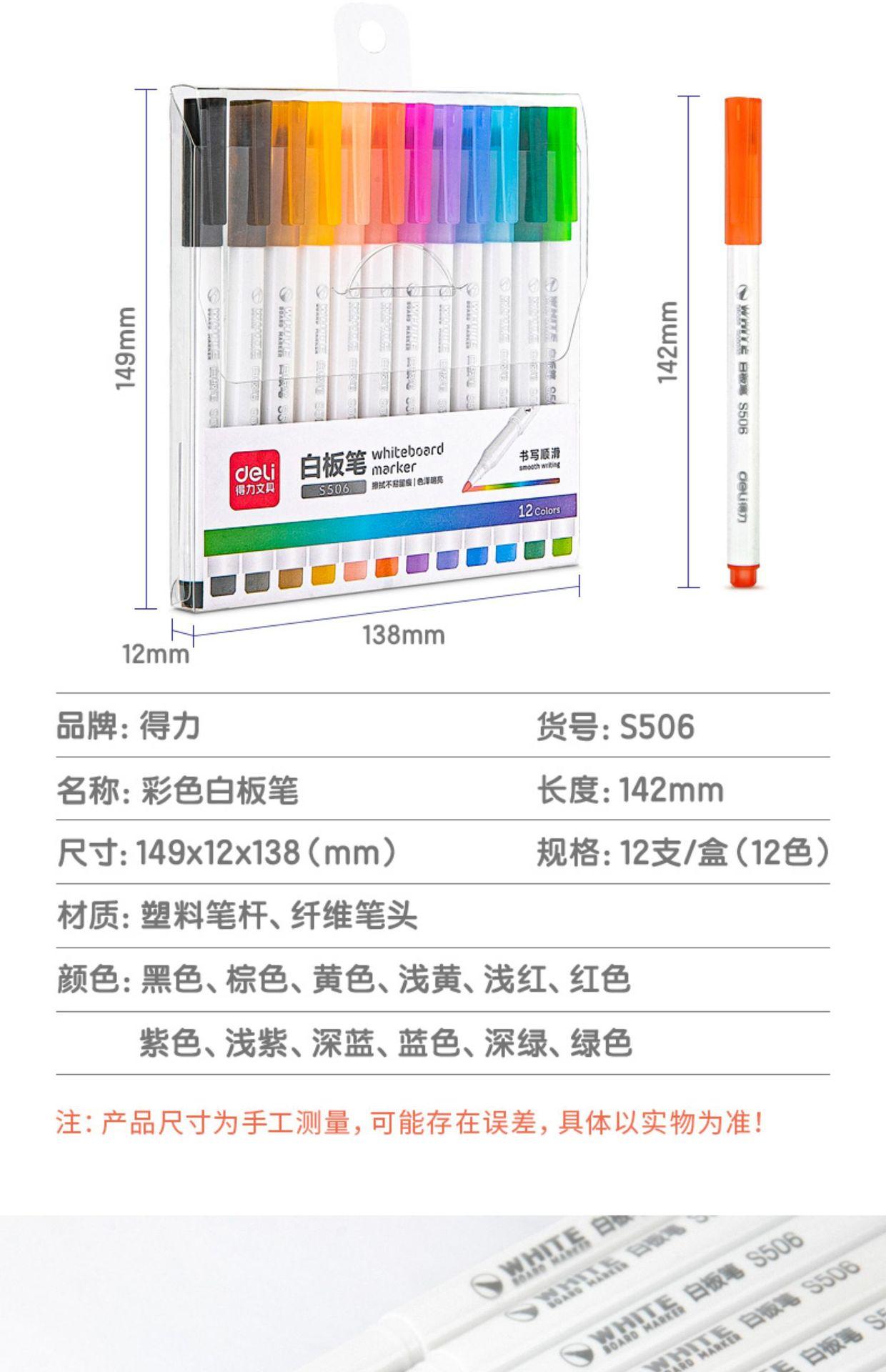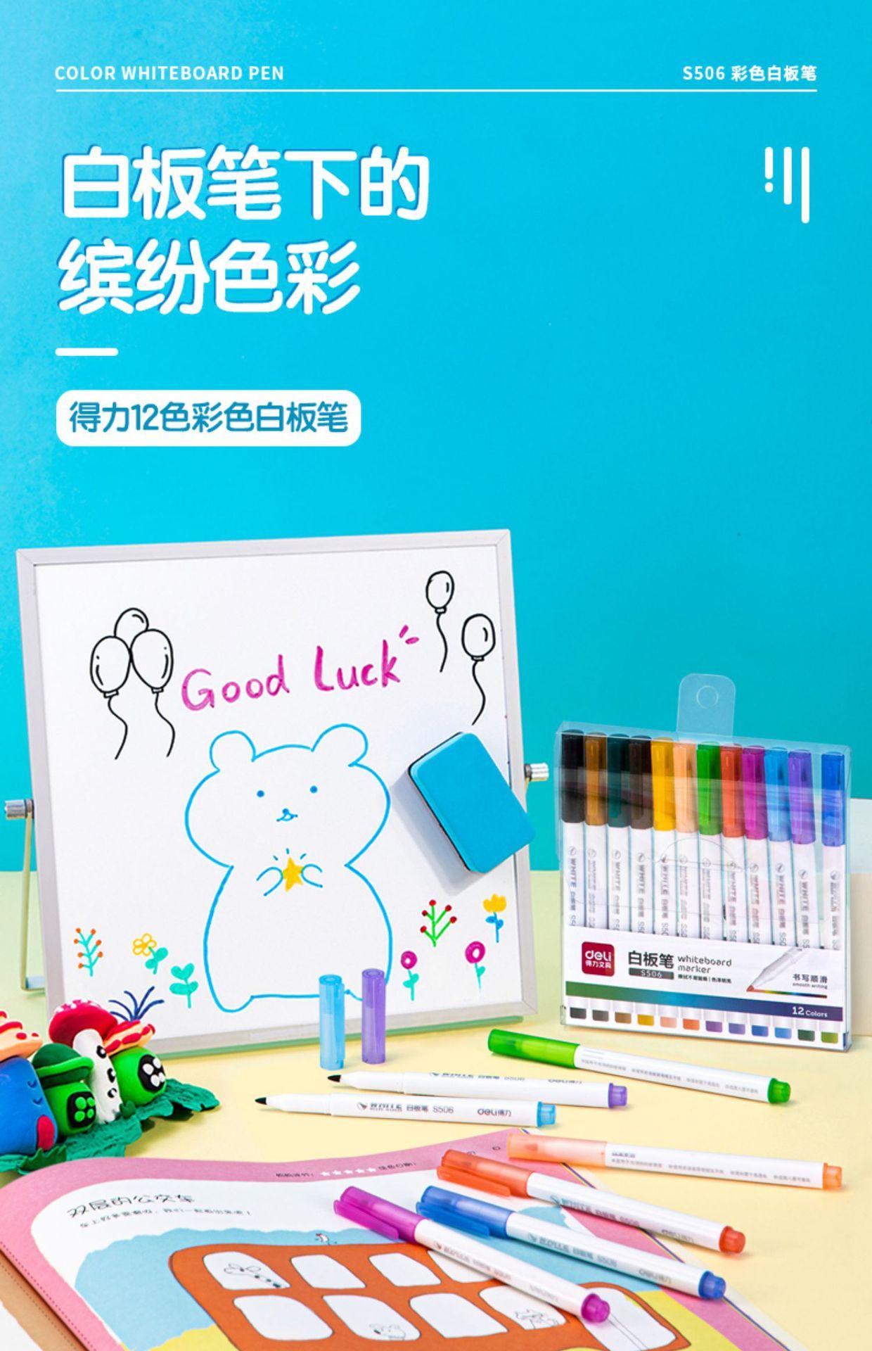 Deli S506 Marcador de Pizarra Blanca Borrable de Colores para Niños Marcador de Pizarra de Dibujo a Base de Agua Bolígrafo para Escribir Fácil de Borrar Punta Fina Tamaño Pequeño