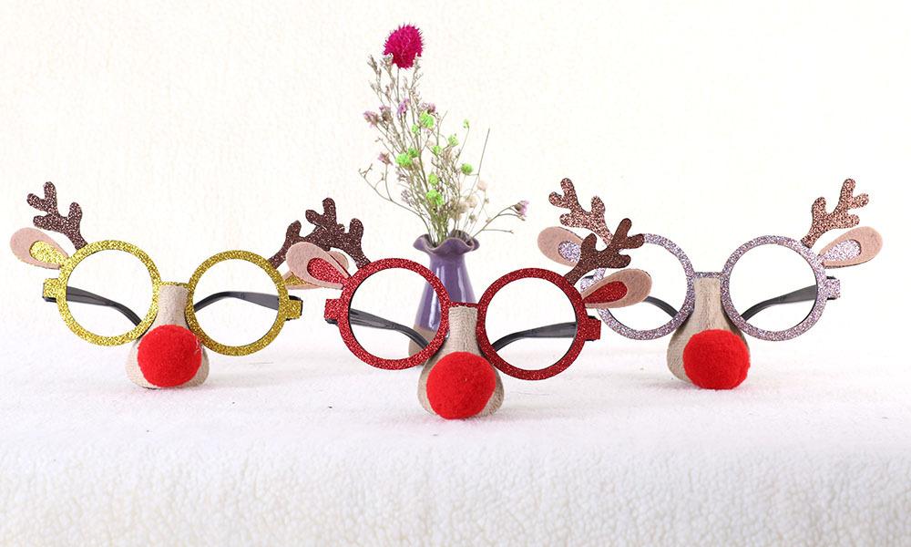 Red nose red frame antler glasses, Red-nosed gold-rimmed antler glasses, Red Nose Powder Frame Antler Glasses
