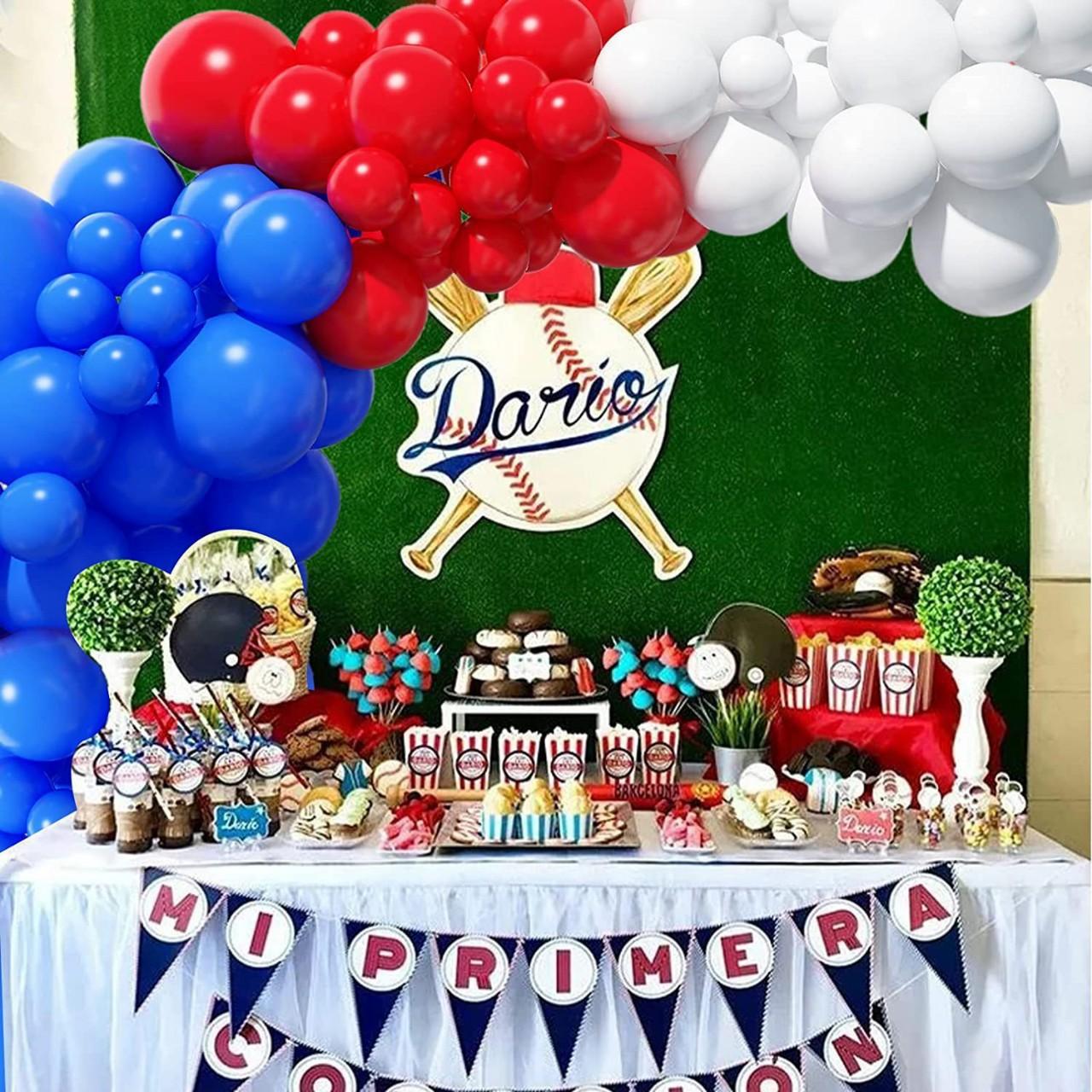 Cadena de globos transfronteriza de color azul mate, rojo y blanco, paquete de decoración de globos para fiesta de un año para niños, diseño de escena, accesorios de corona