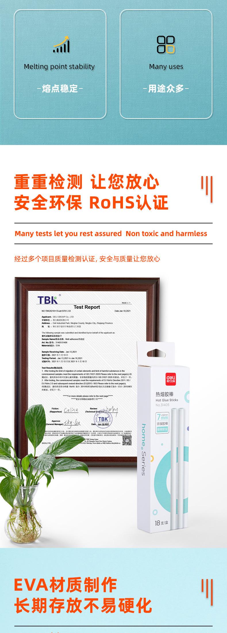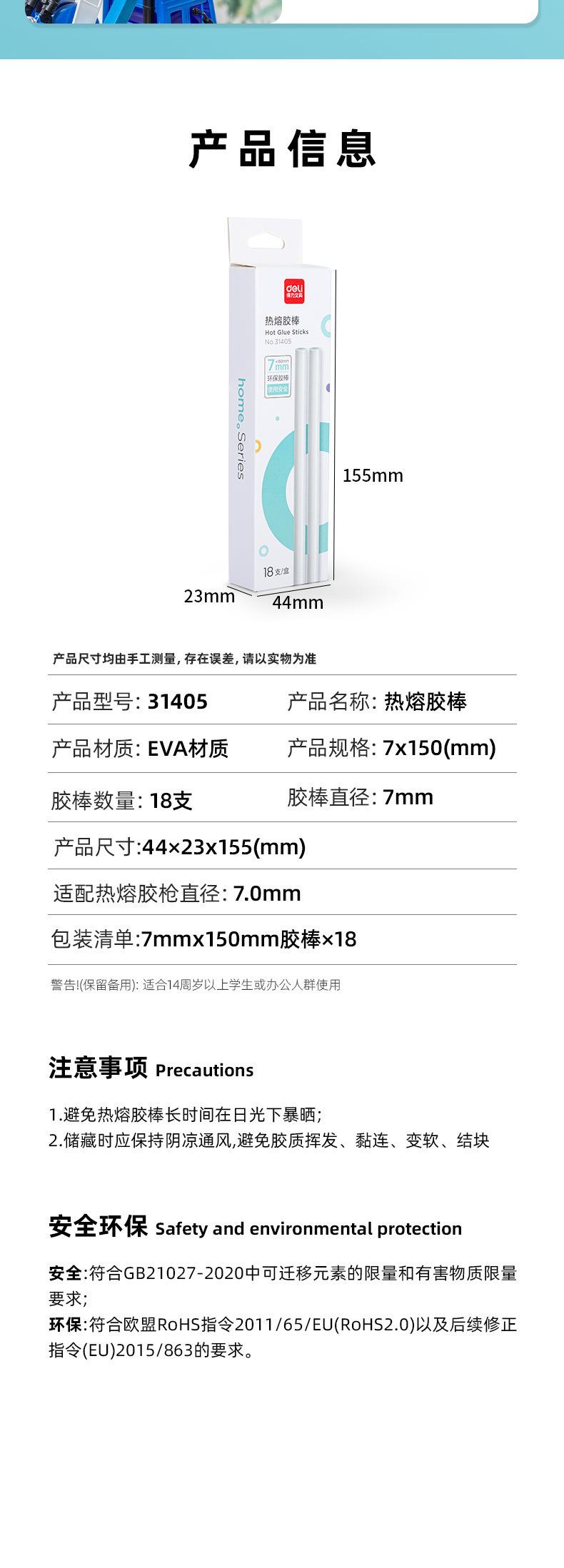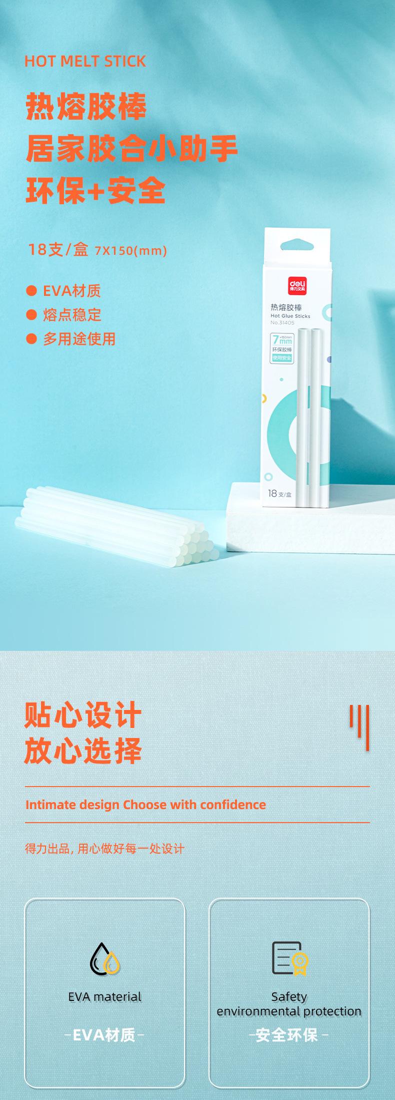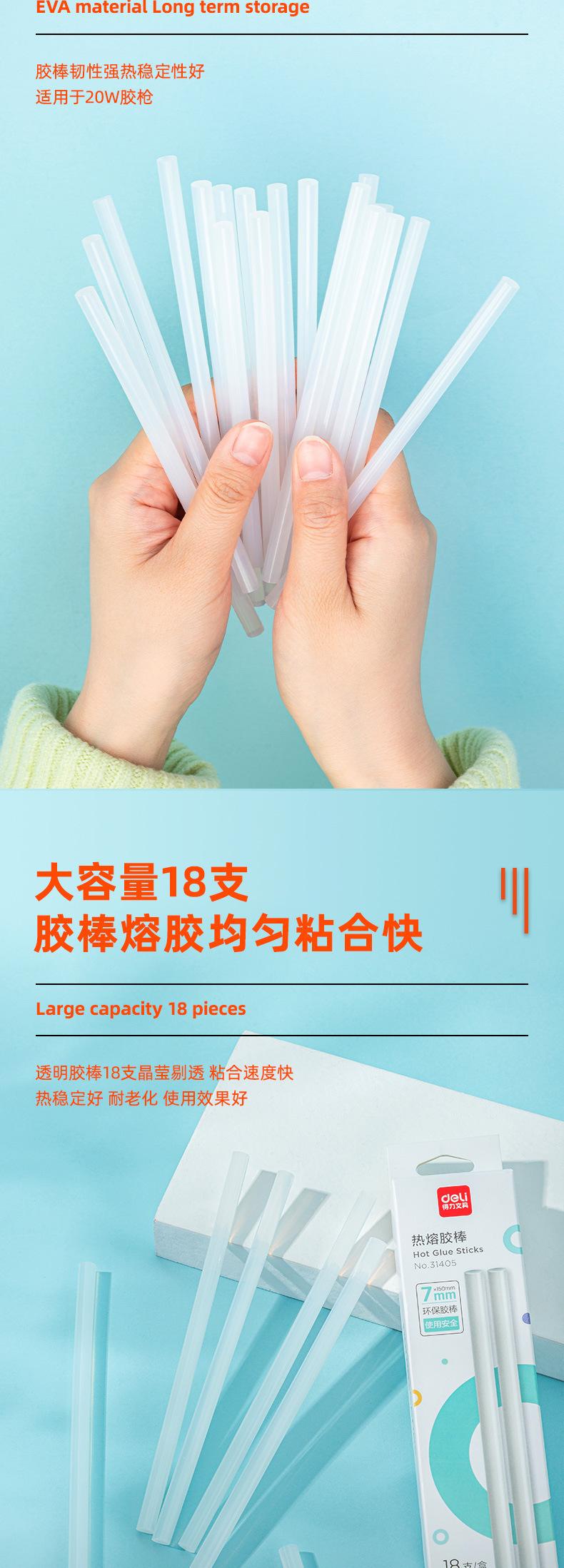 Deli 31405 barra de pegamento termofusible de 7 mm, pistola de pegamento caliente hecha a mano para el hogar de los niños, barra de pegamento termofusible, tira de pegamento al por mayor