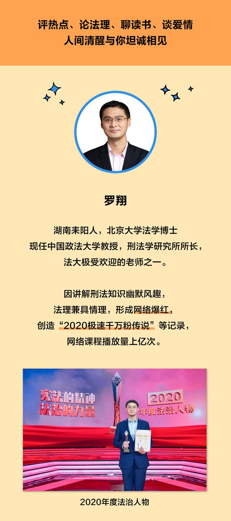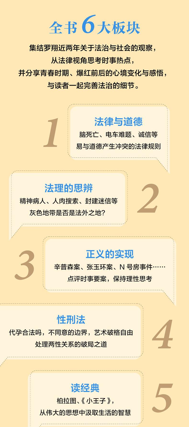 Luo Xiang, profesor de la Universidad de Ciencias Políticas y Derecho de China, tiene una nueva colección de ensayos con más de 20 millones de seguidores, que mejora el conocimiento legal y la sabiduría para la vida. El caso Simpson, el caso Zhang Yuhuan, el incidente de la Nth Room, casos legales clásicos, aclaran los límites entre la ley y la moral, y cultivan el pensamiento crítico. Evitación de emergencia, búsqueda de personas, costumbres populares feudales... ¿Está la ley rezagada con respecto a los tiempos? ¿Existe una zona gris? Agresión sexual, aborto, sistema de consentimiento... Protegen los derechos de las mujeres y mejoran los detalles del estado de derecho. Leer a Platón y "El Principito" juntos, extraer sabiduría para la vida de obras maestras clásicas y encontrarse a uno mismo. En el diálogo de la entrevista, Luo Xiang comparte su experiencia de crecimiento, así como cómo afrontar las dificultades y salir de la experiencia de vida confusa.