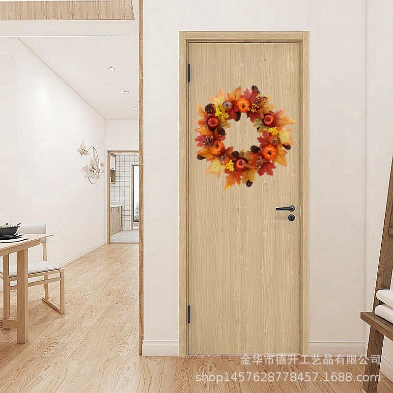 Decoración del Festival de la Cosecha de Acción de Gracias Transfronterizo de Desheng, Halloween, Otoño, Hoja de Arce, Baya, Calabaza, Círculo de Ratán, Hoja de Otoño, Guirnalda de Otoño