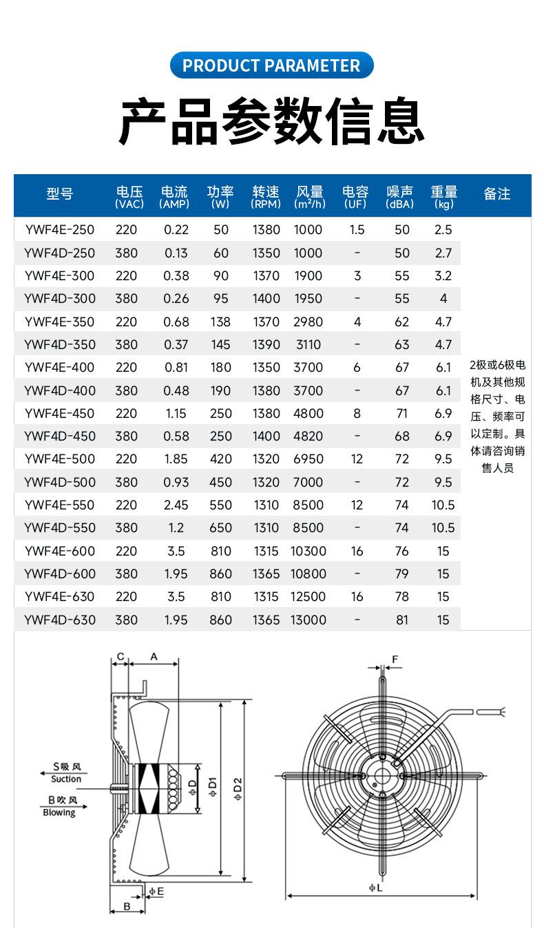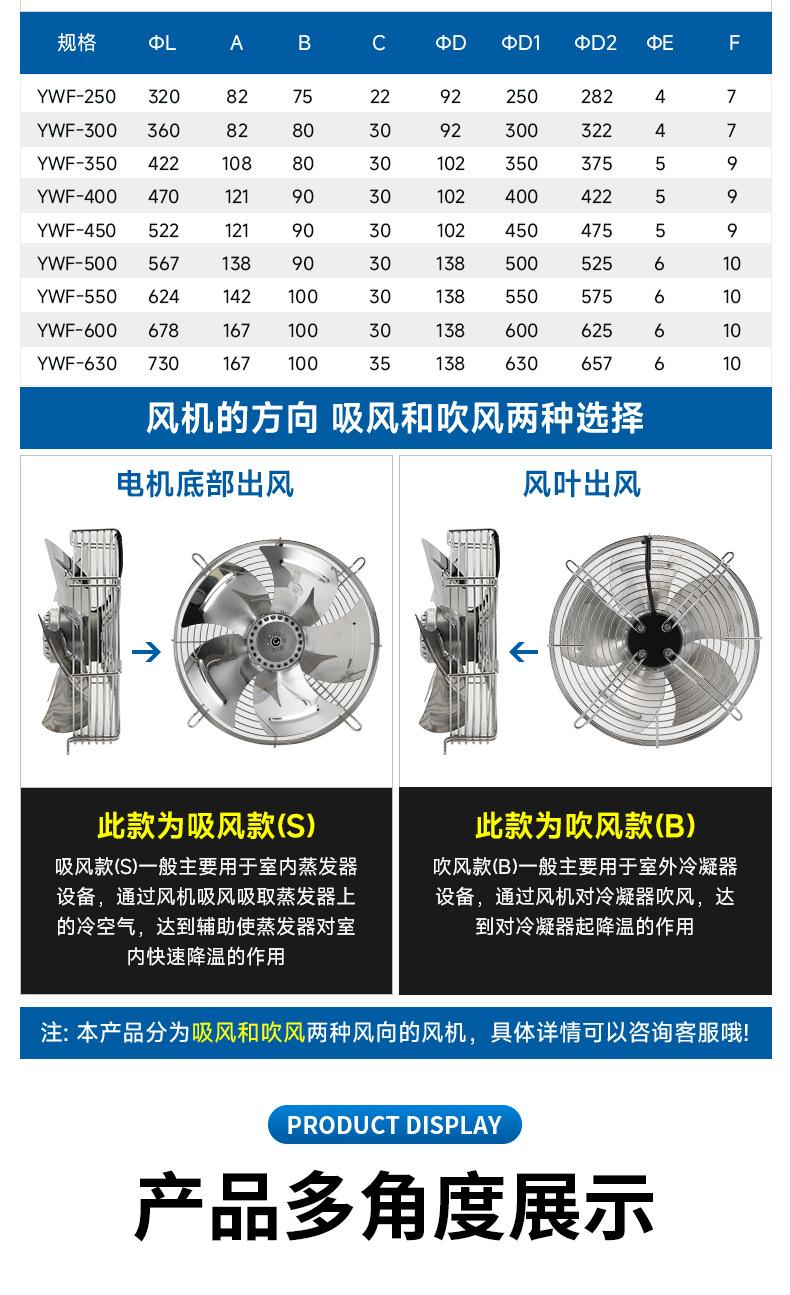 Ventilador de Rotor Externo Ventilador de Enfriamiento por Condensación Acero Inoxidable 304 Ywf Flujo Axial Potente Ventilador de Extracción Portátil Ahorro de Energía y Bajo Ruido