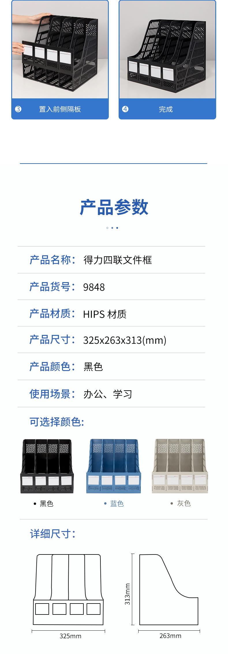 Deli Deli 9848 Marco de archivo cuádruple Marco de archivo de suministros de oficina Marco de archivo de datos Marco de archivo de estudiantes Marco de datos