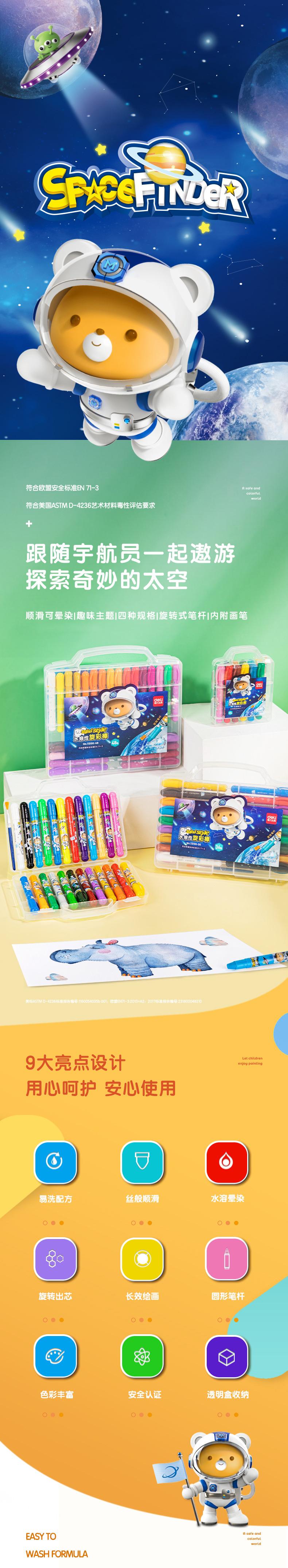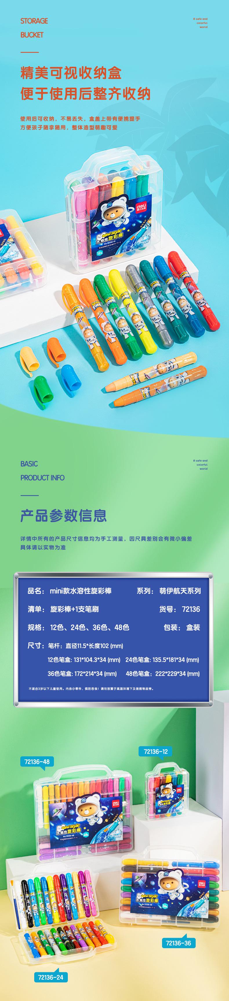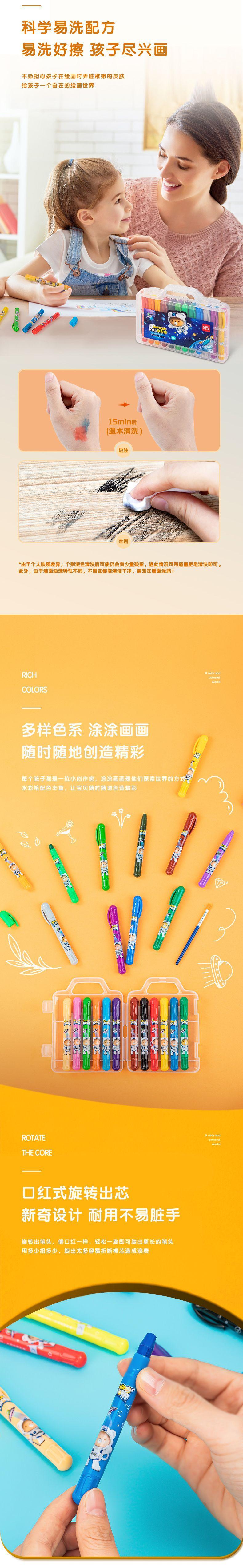 Deli 72136 - Barra de color rotativa para jardín de infantes, soluble en agua, para pintar al óleo, juego de crayones rotativos para niños