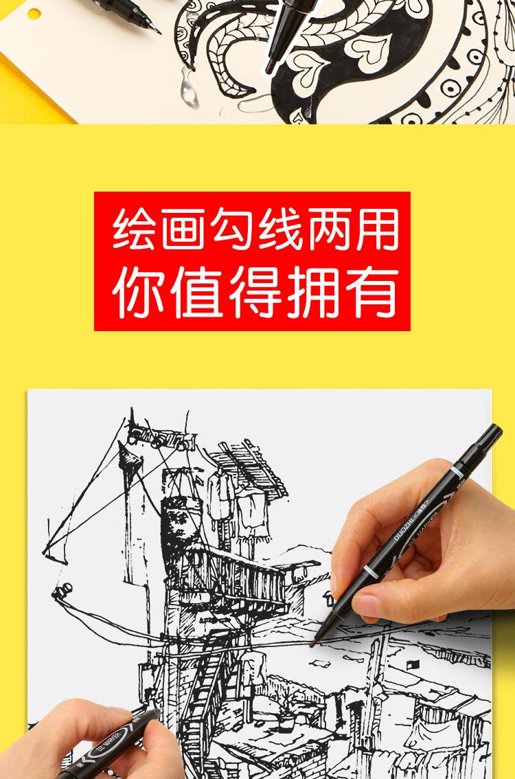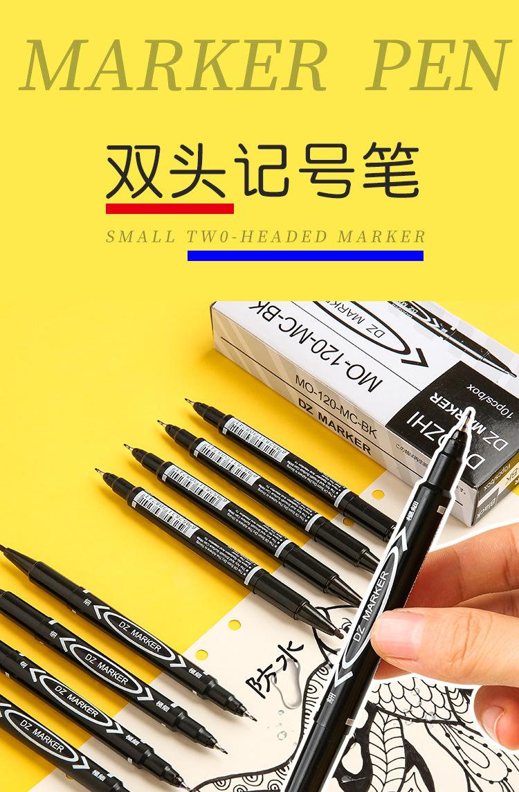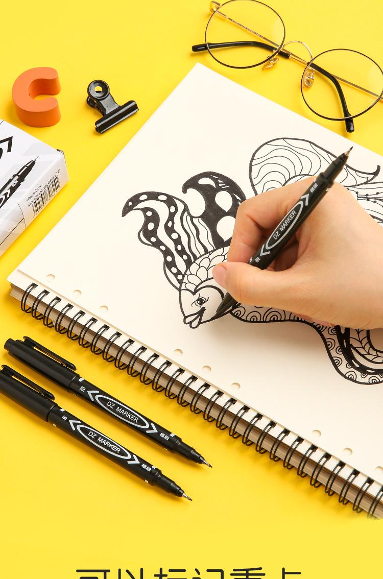 Rotulador Gou line Pen pequeño de doble punta para estudiantes de arte, rotulador negro aceitoso de punta pequeña y punta fina para pintura infantil.