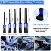 Este juego incluye 5 cepillos para taladro, 1 varilla de extensión, 5 cepillos de detalle, 2 esponjas para encerar, 2 toallas de 3040 cm, 1 cepillo para salidas de aire, 1 disco adhesivo, 1 esponja plana, 1 esponja ondulada, 3 cepillos de alambre, 1 guante grande de 2028 cm y 100 g, 1 lata de gel, un total de 24 piezas en un juego