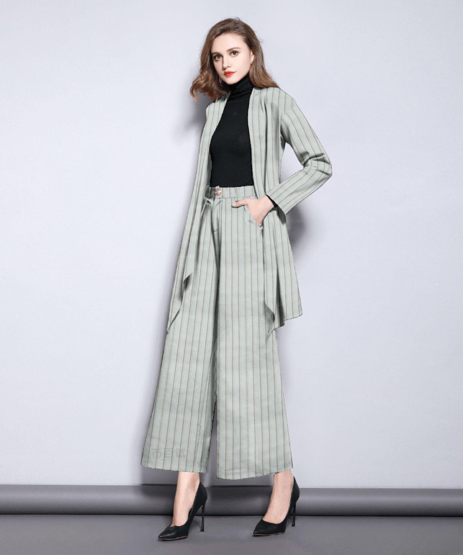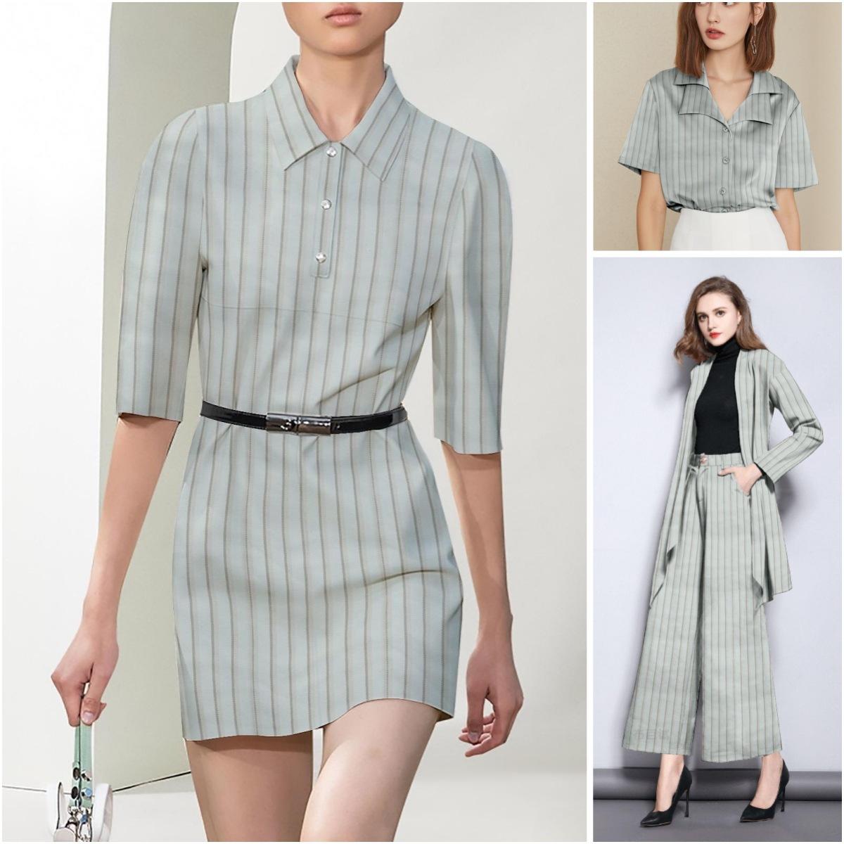 Traje de sarga elástica teñida en hilo TR, color blanco cremoso, a rayas de 1,5 de ancho, para pantalones de traje, vestido, chaleco, traje, tela en stock