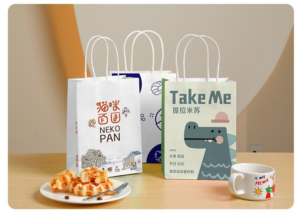 Bolsa de Papel Kraft de Alta Gama Personalizada Estilo Crema Bolso Impreso con Logotipo Embalaje para Postre Horneado Bolsa de Regalo para Llevar a a