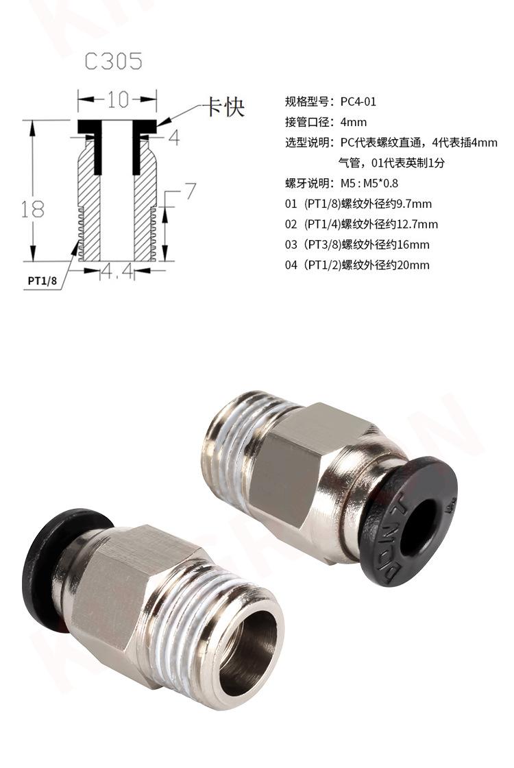 B0019-pc4-m10 (matching 2*4/3*4 tubes), B01946-pneumatic quick connector blue circlip