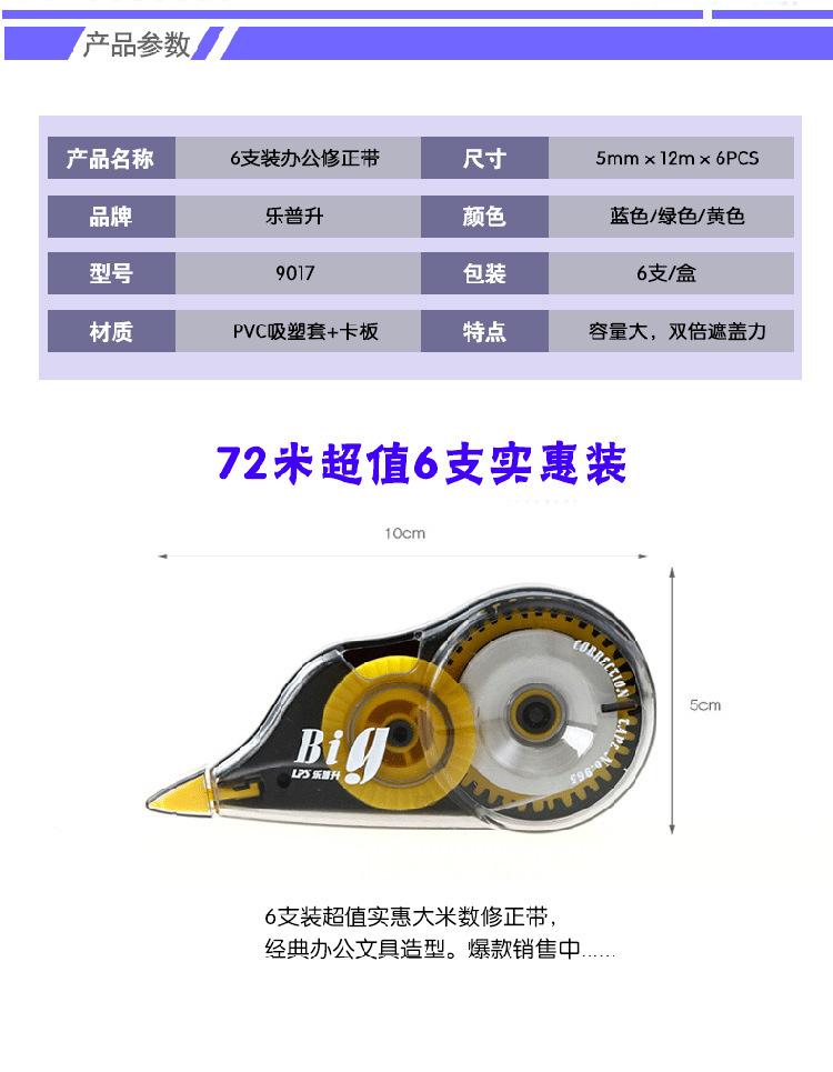 Cinta correctora LPS Lepusheng 9017, 6 unidades, económica, de gran capacidad, ideal para oficina y escuela.