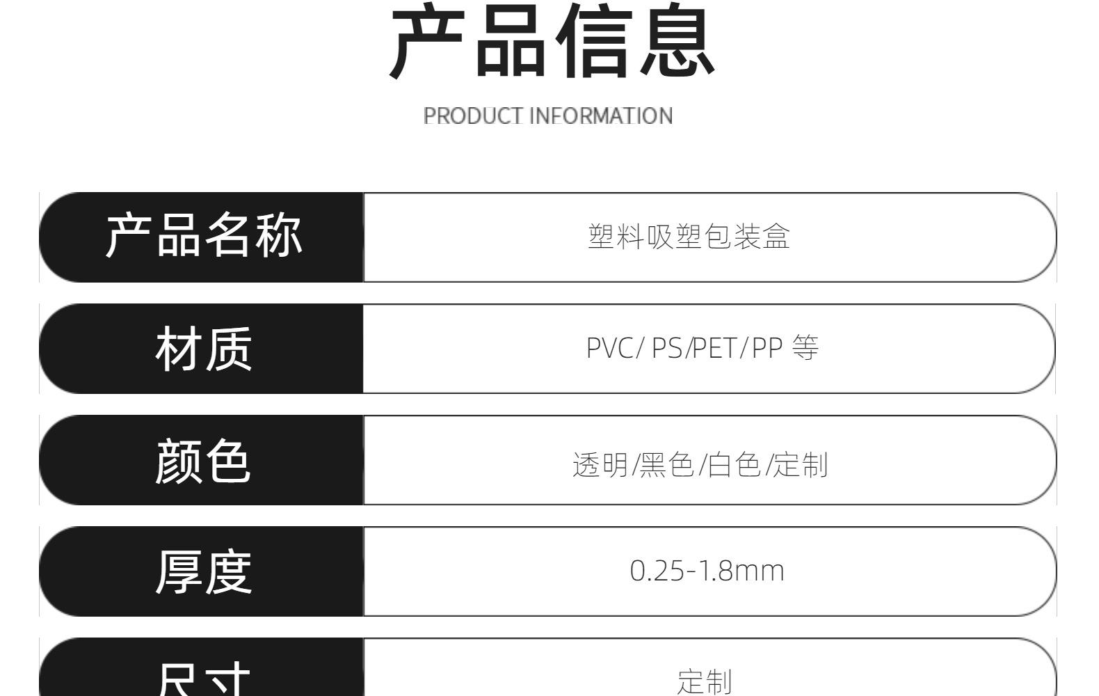 Blíster de plástico PS desechable con soporte interior, personalizado, de fábrica de Shenzhen, formado al vacío, engrosado