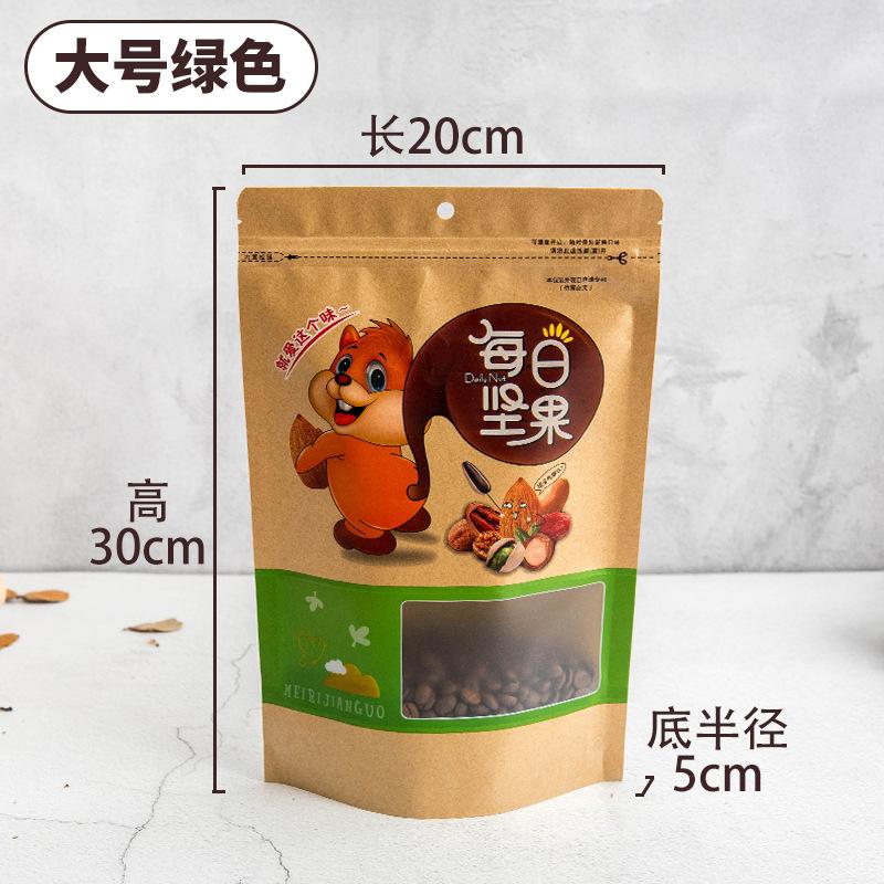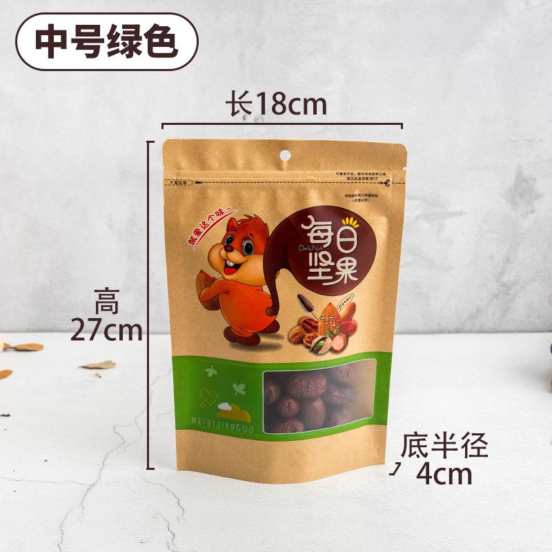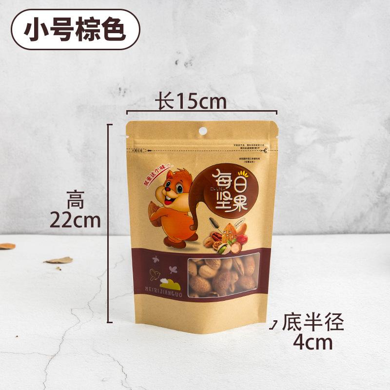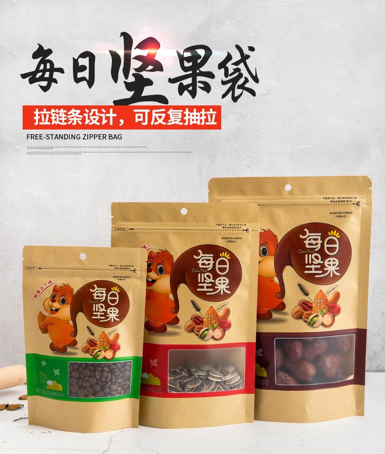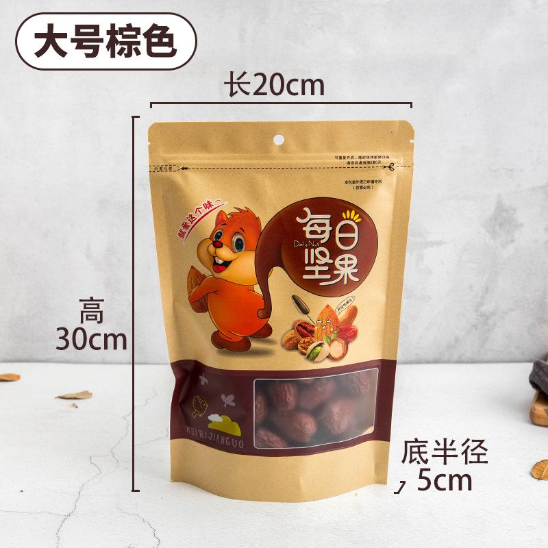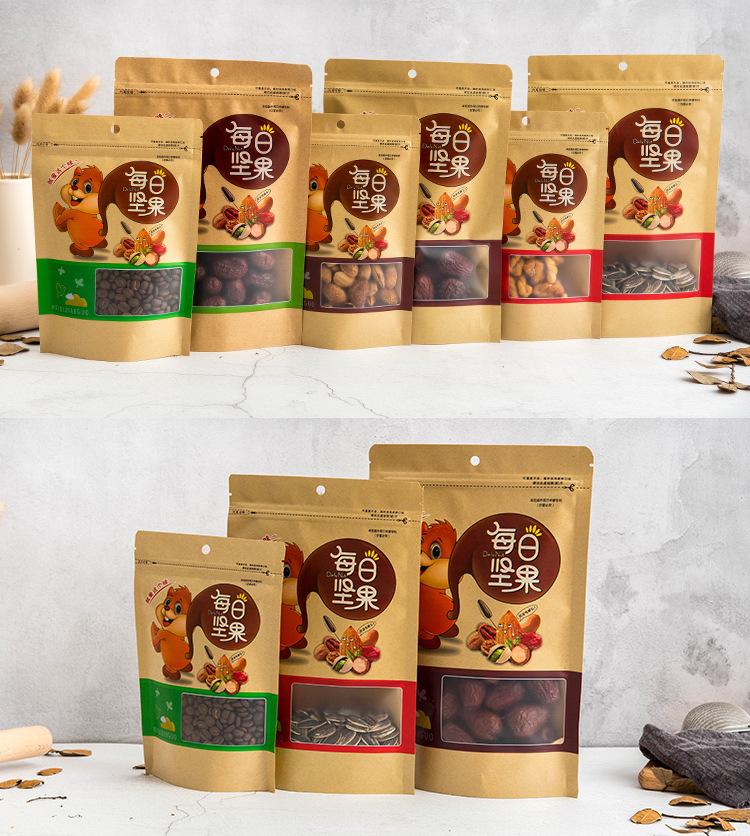 Bolsa de embalaje de alimentos de nueces diaria bolsa de papel kraft con ventana semillas de melón dátiles rojos nuez ventana bolsa autosellable al por mayor
