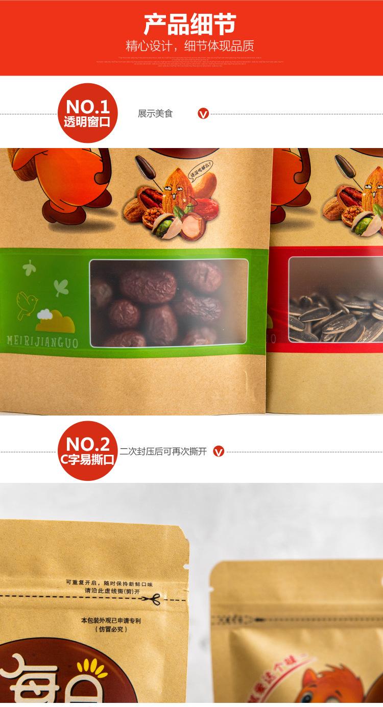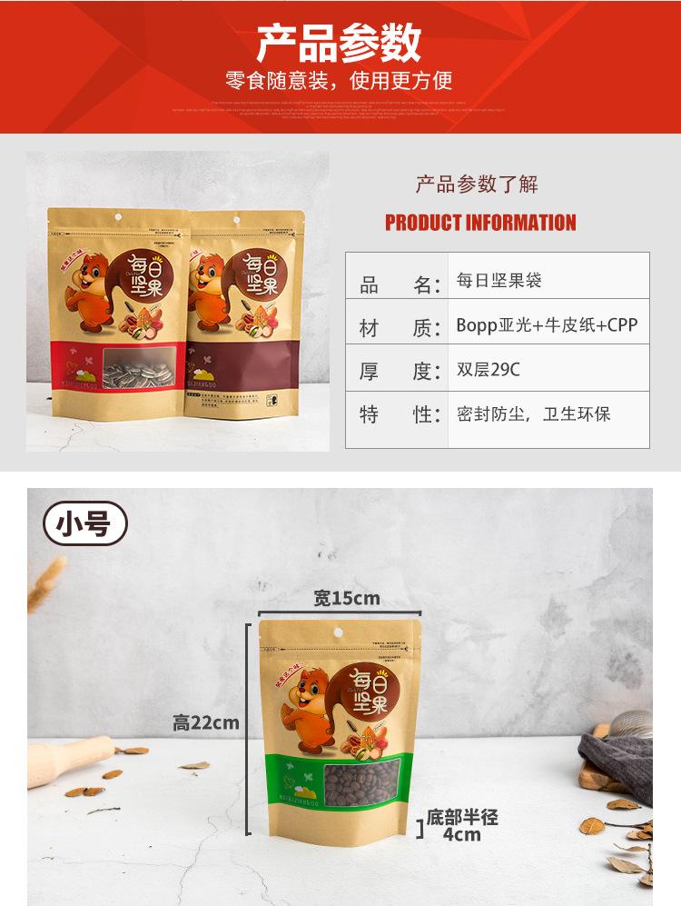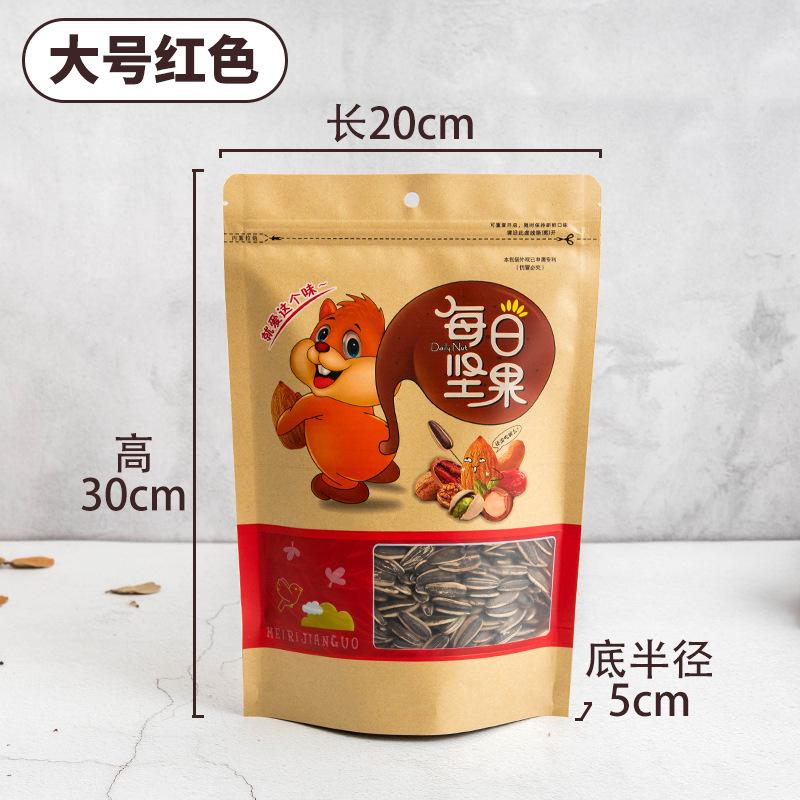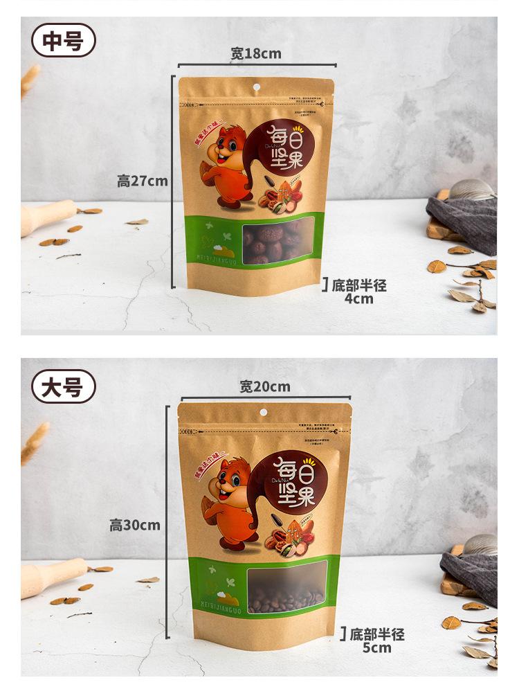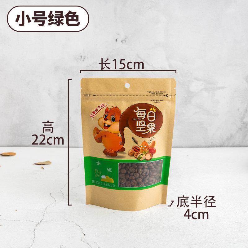 Bolsa de embalaje de alimentos de nueces diaria bolsa de papel kraft con ventana semillas de melón dátiles rojos nuez ventana bolsa autosellable al por mayor
