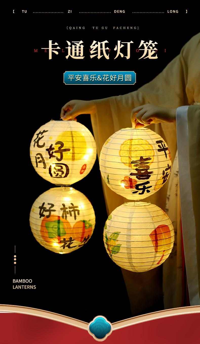 Festival del Medio Otoño Marea China Linternas de Papel Antiguas de Mano Accesorios de Baile Centro Comercial Linternas Tradicionales Decorativas para Diseño de Escena