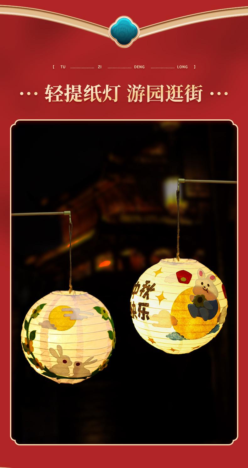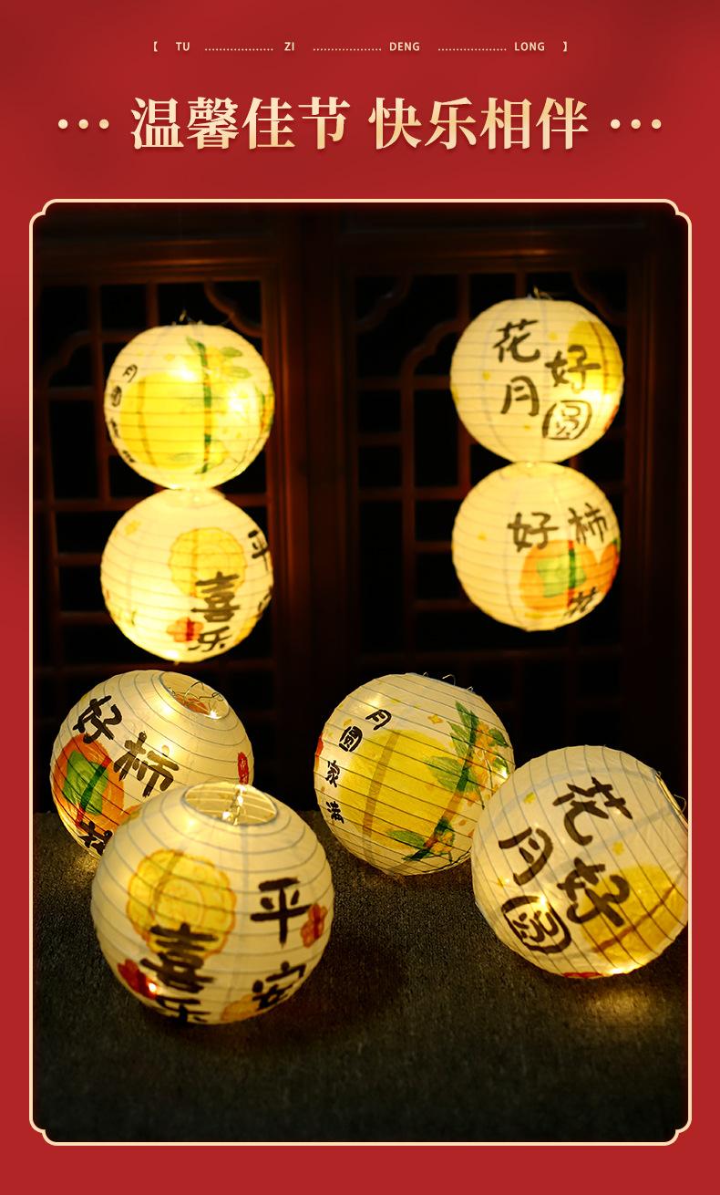 Full moon home-printing-paper lantern s (including light cord + portable pole)