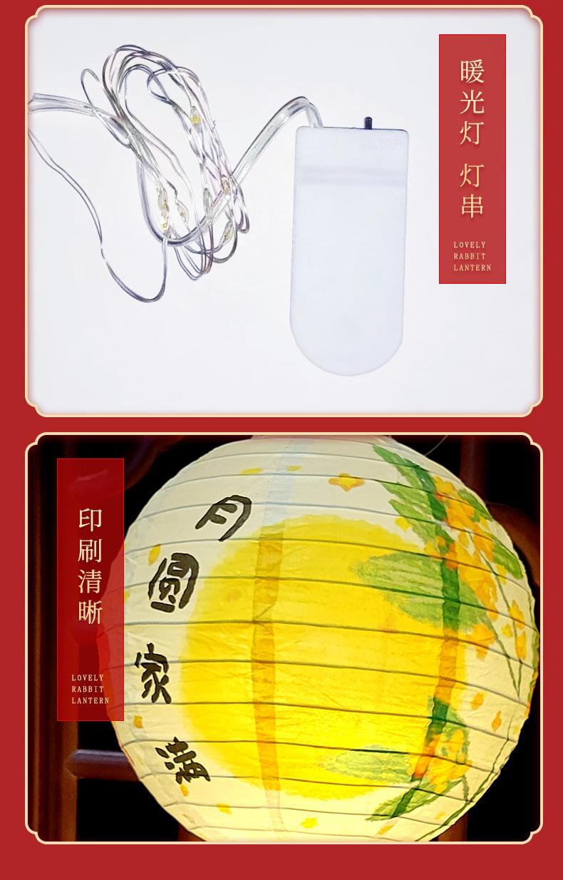 Flowers and full moon-printing-paper lanterns (including light cord + portable pole)