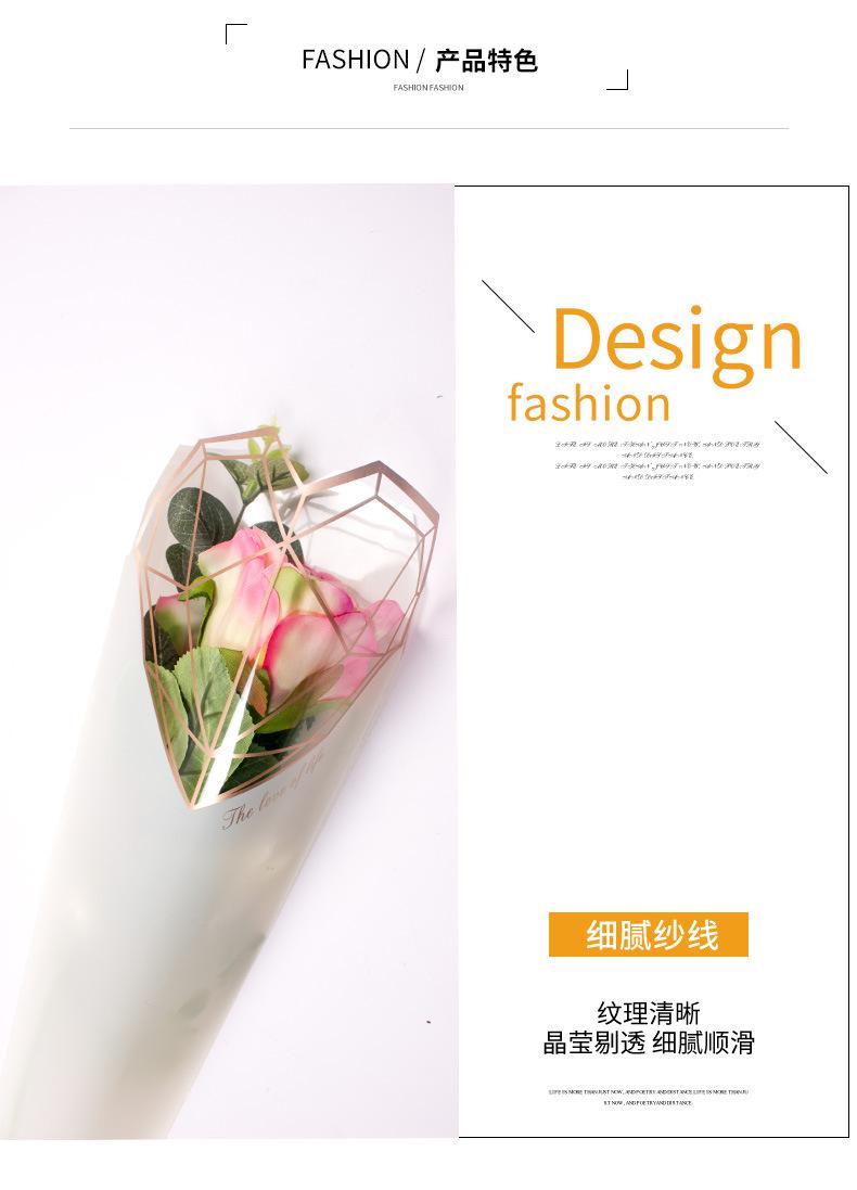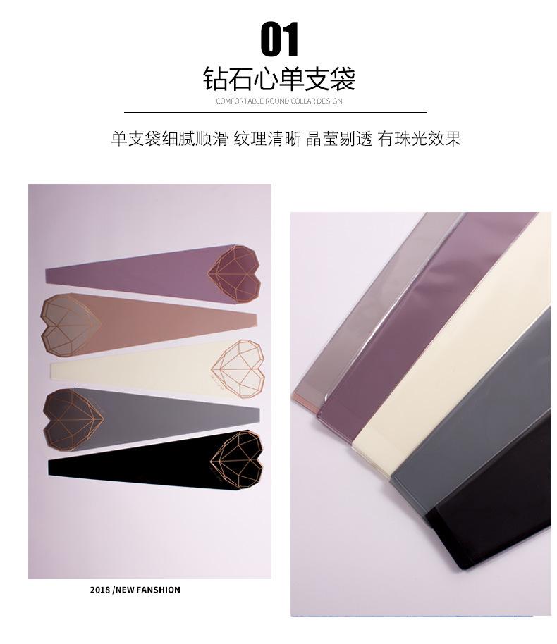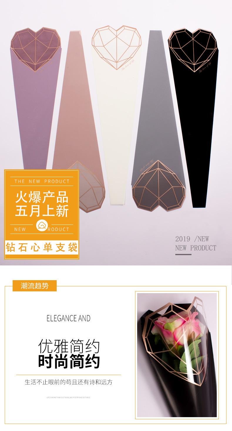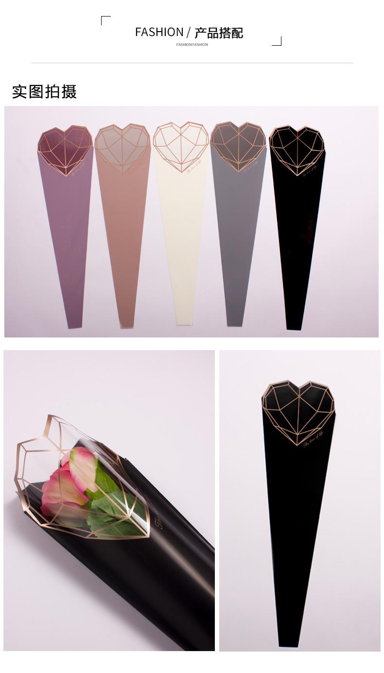 Bolsa de embalaje de flores con forma de corazón de diamante, bolsa individual de material opp, bolsa triangular, bolsa de embalaje de flores rosas, venta al por mayor