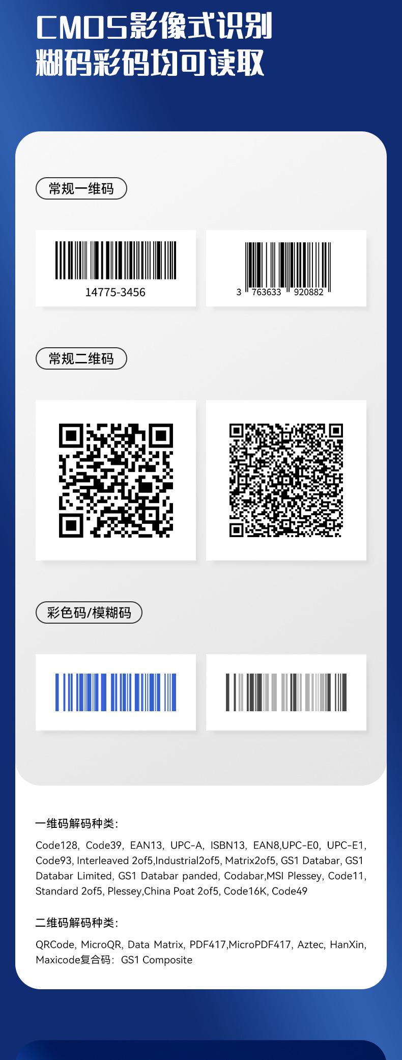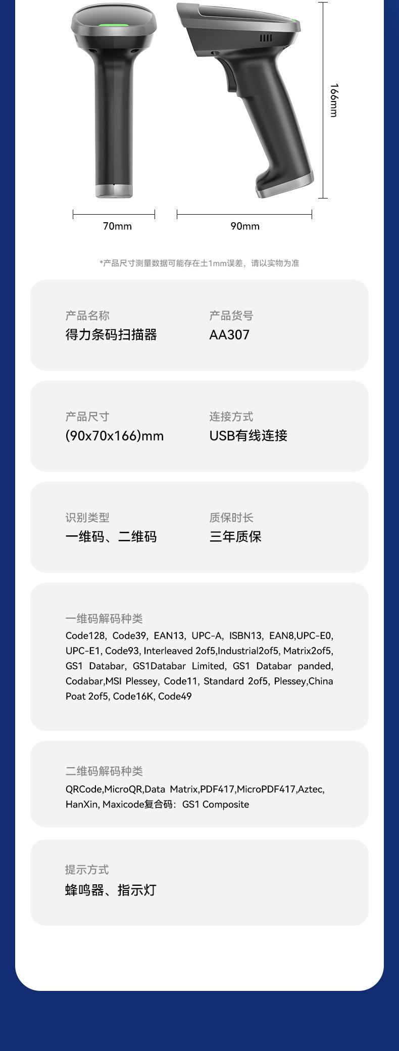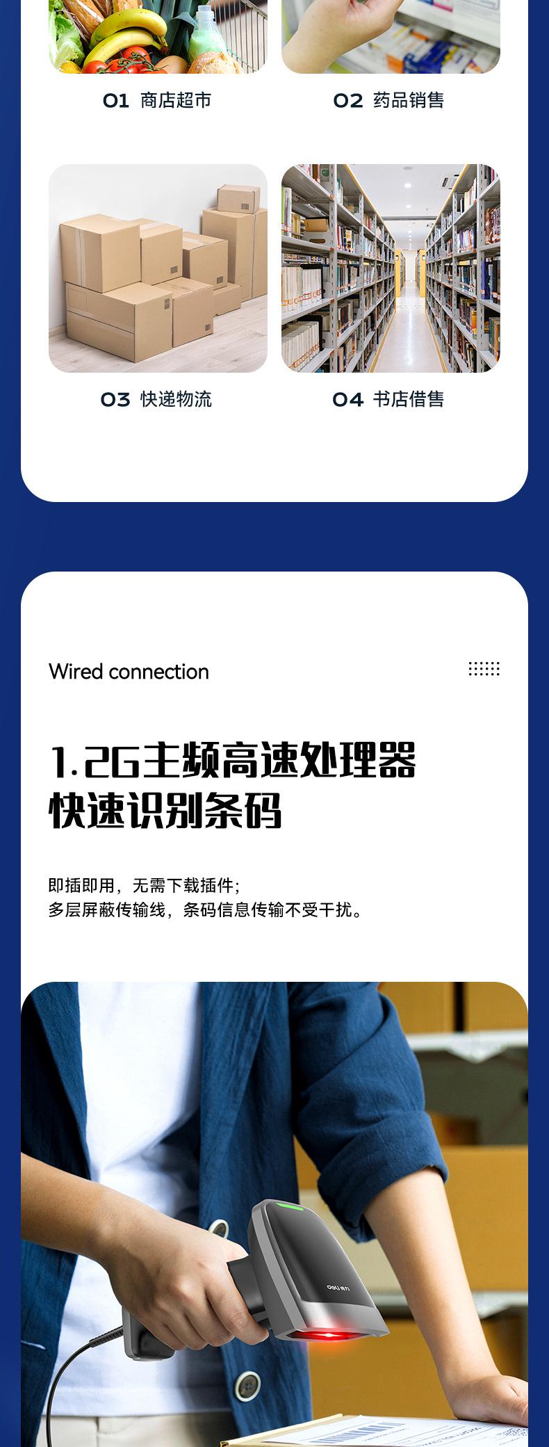 Pistola de escaneo de códigos Deli AA307, código unidimensional, código bidimensional, proveedor de logística exprés, escáner de código de barras con recolección por cable en caja registradora
